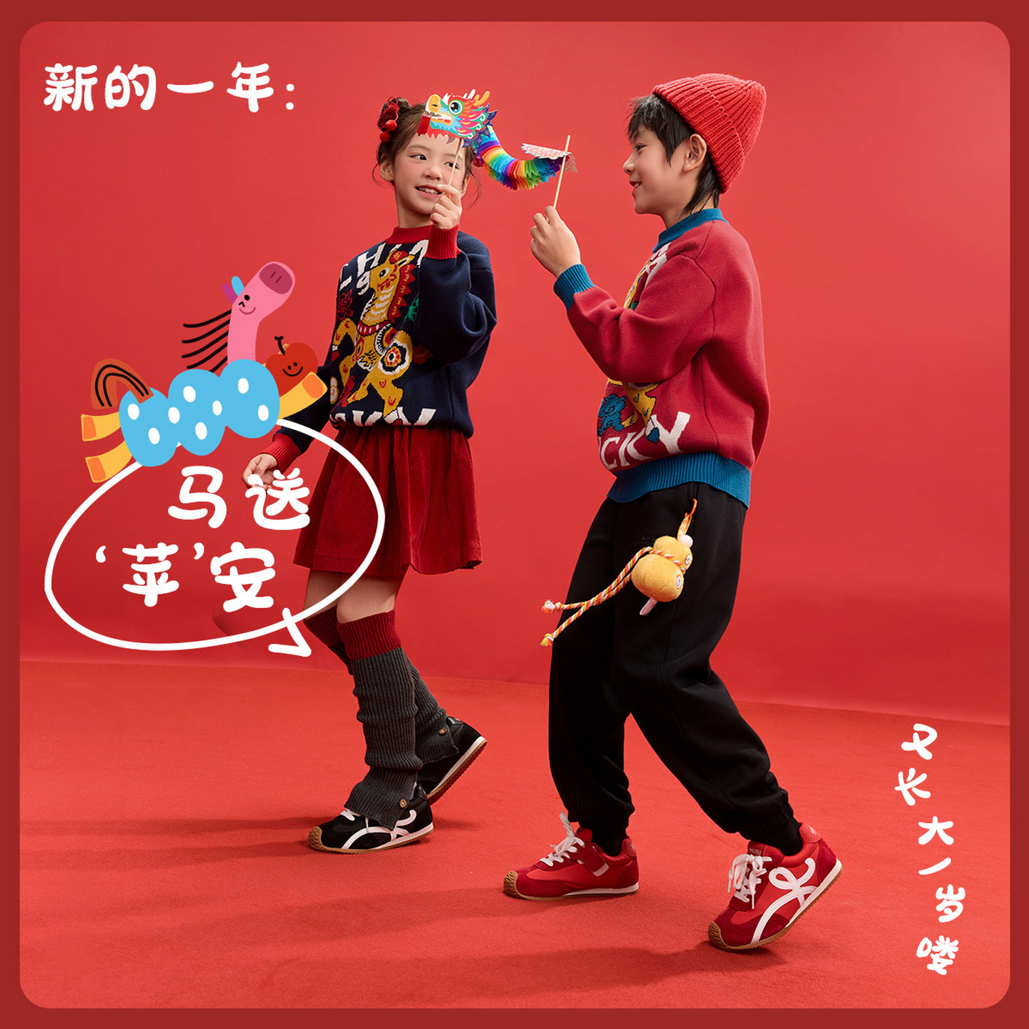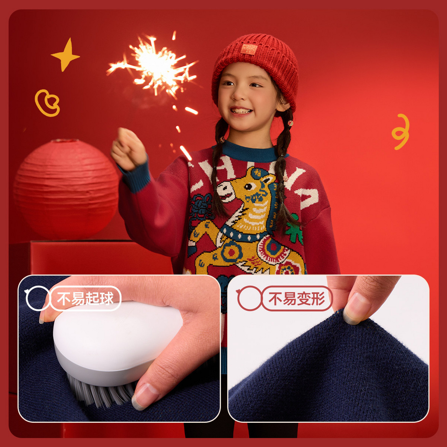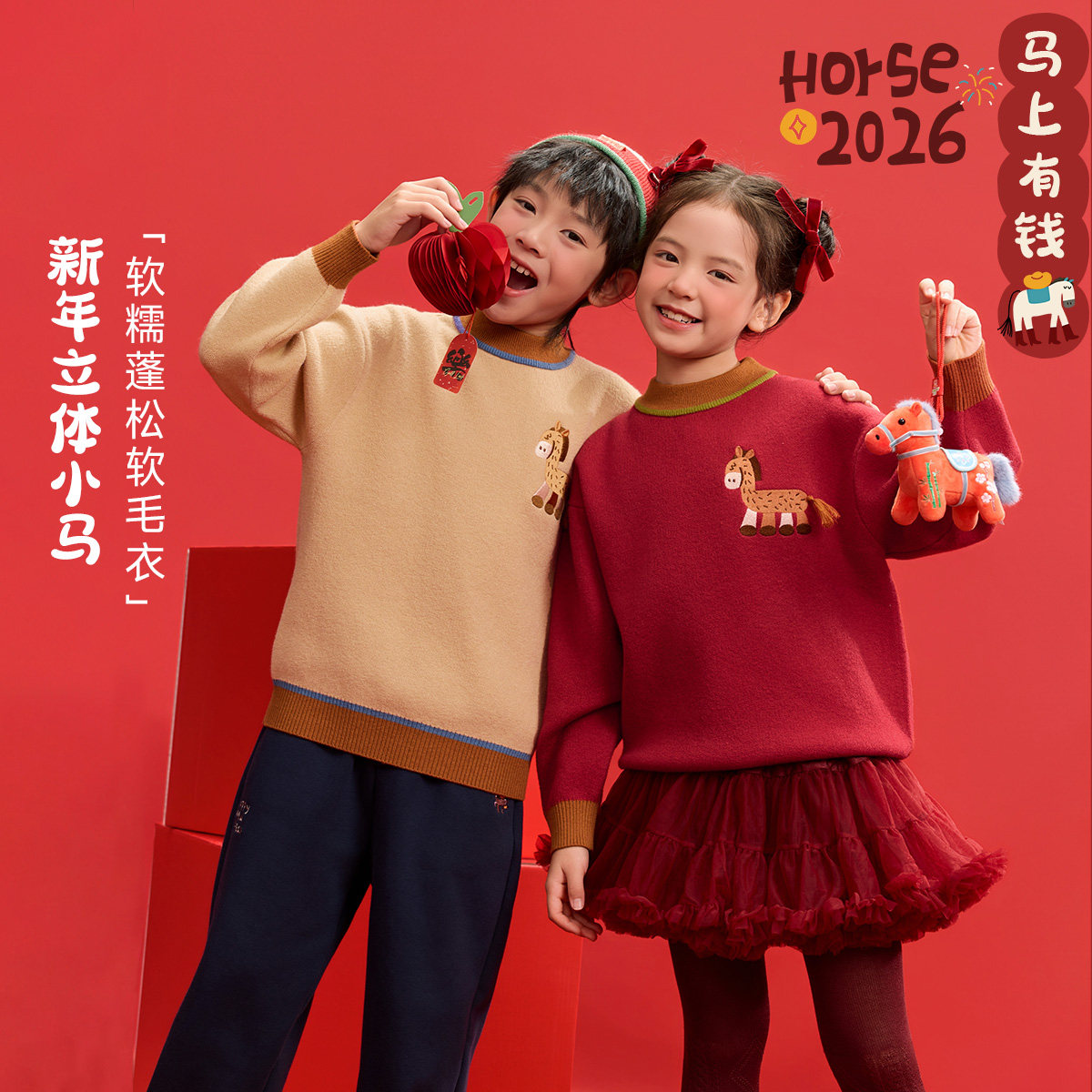 EBAER儿童新年毛衣2026冬季新款男童女童马年拜年服红色保暖上衣