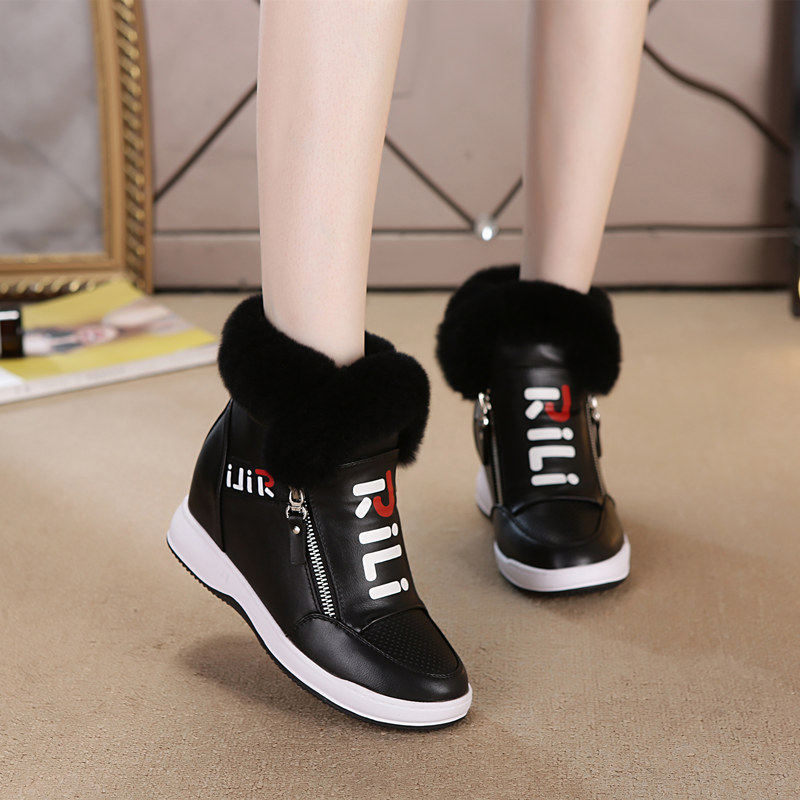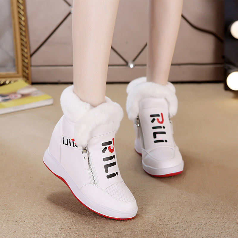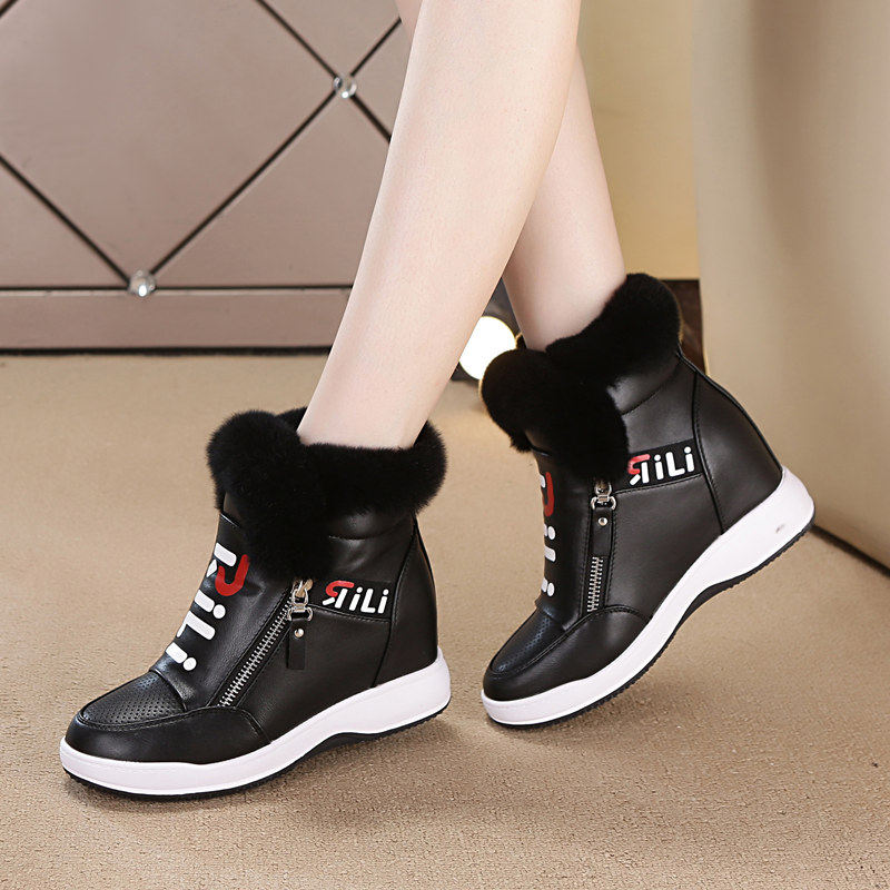 真兔毛内增高女鞋2026新款冬季短靴加绒厚底保暖雪地靴女小白鞋嘲