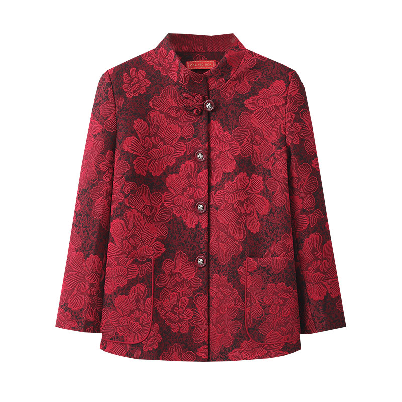 提花女式上衣春秋装新款洋气妈妈款衣服女中老年2024外套60岁宽松