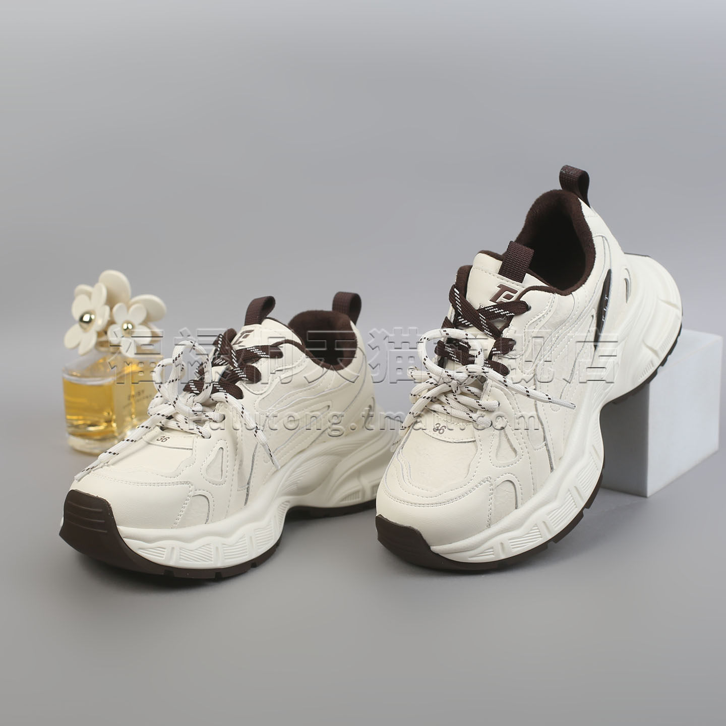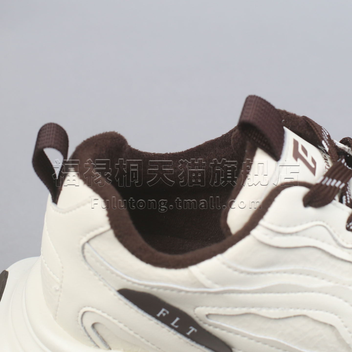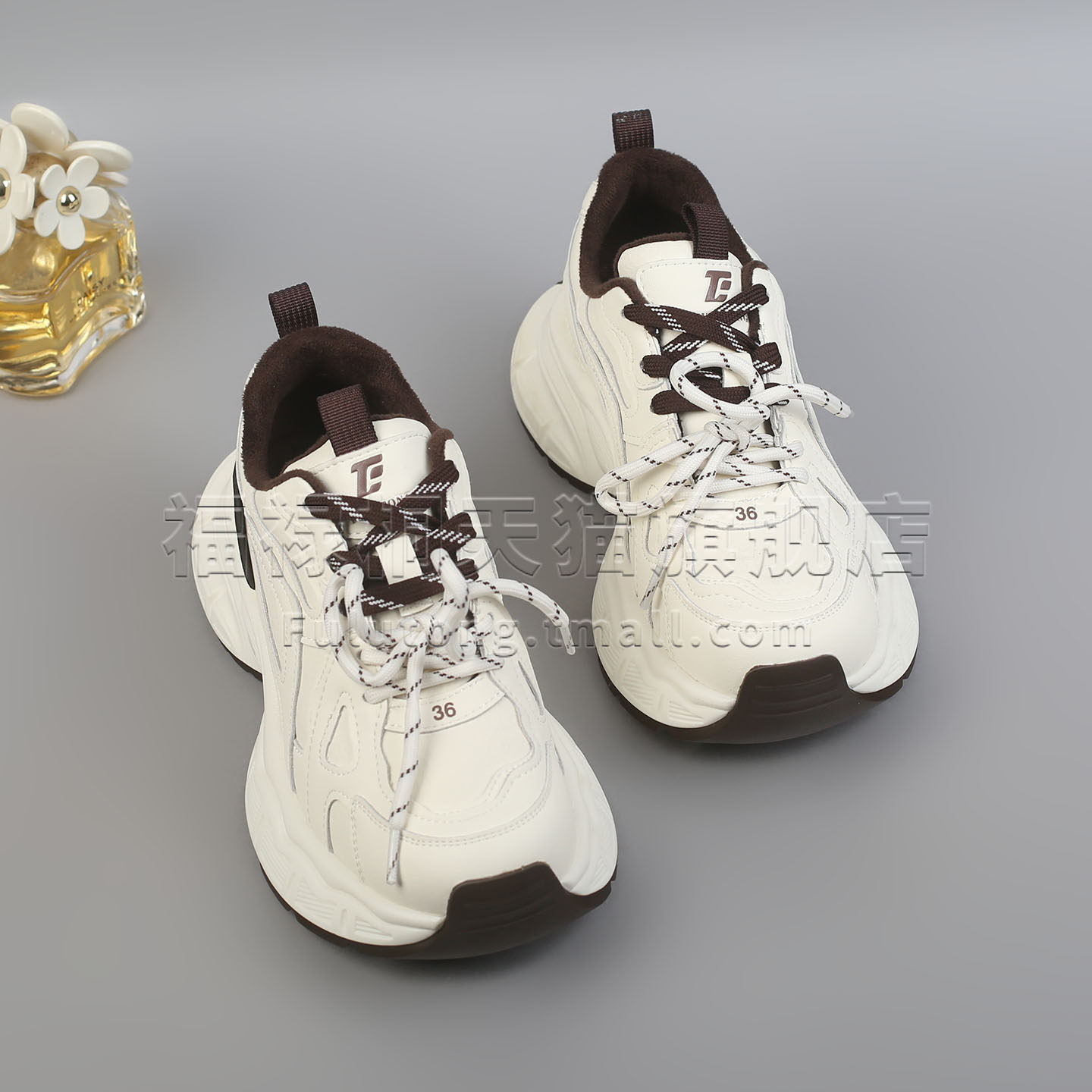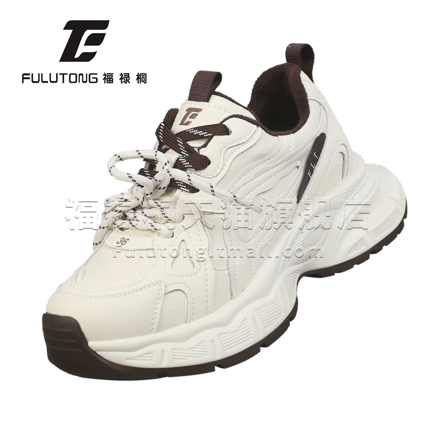 福禄桐厚底老爹鞋女秋冬季白色运动休闲鞋韩版潮加绒系带厚底鞋