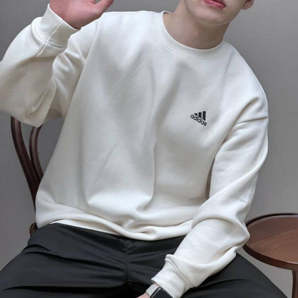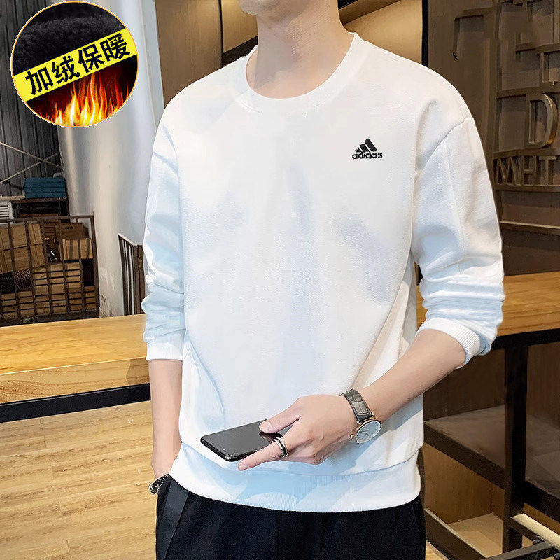 阿迪达斯加绒卫衣男装秋冬季新款宽松上衣长袖白色简约外套套头衫