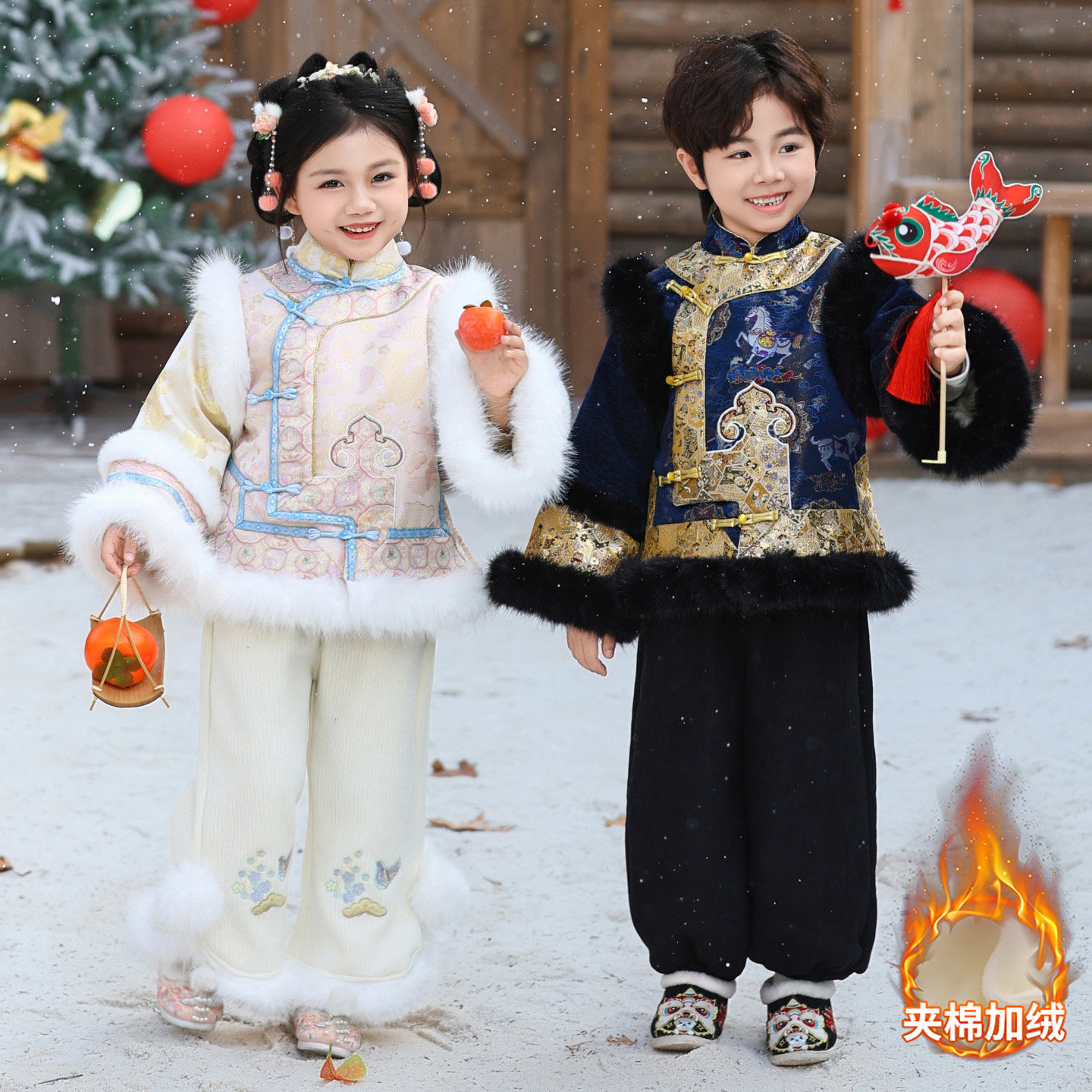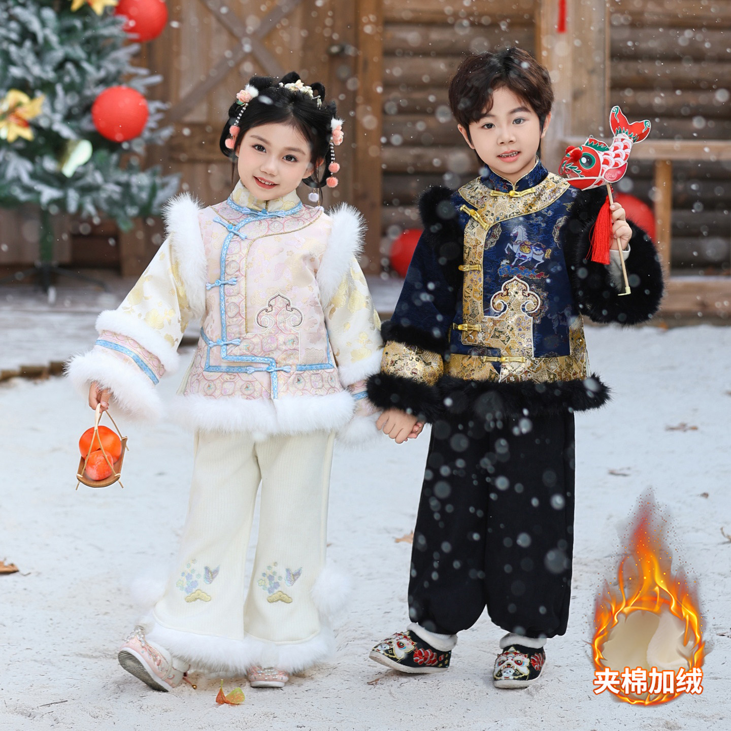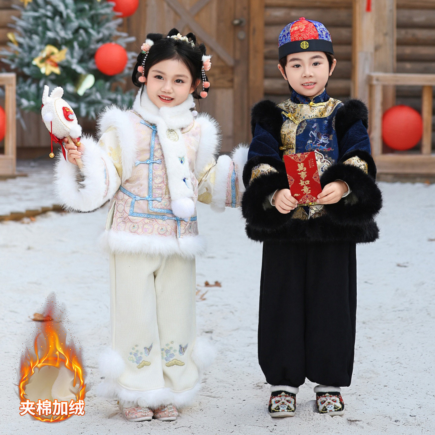 男童加绒拜年服冬季中国风女童夹棉加厚汉服套装新中式古装新年装