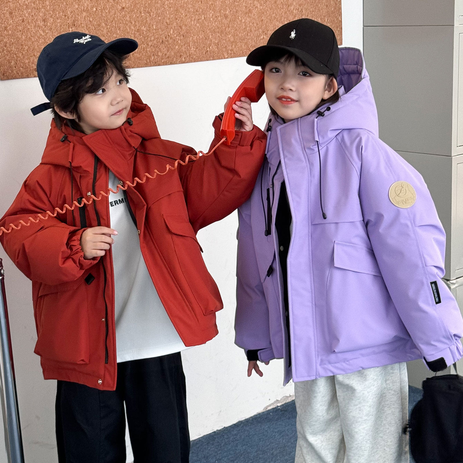 儿童工装羽绒服2025年男童女童中大童韩版冲锋衣连帽白鸭绒外套潮