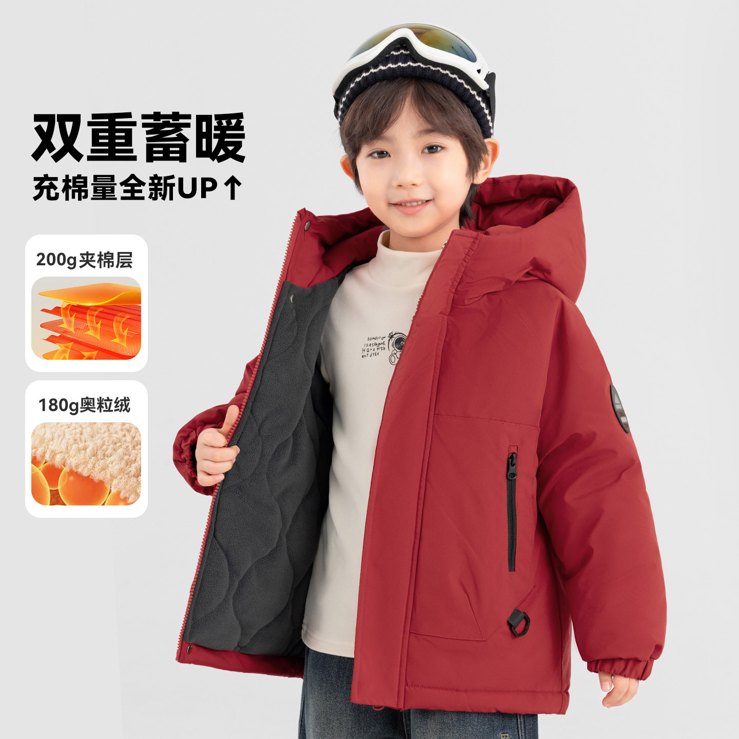 多多家男童棉服冬装2025新款儿童中大童加厚外套保暖红色新年棉衣