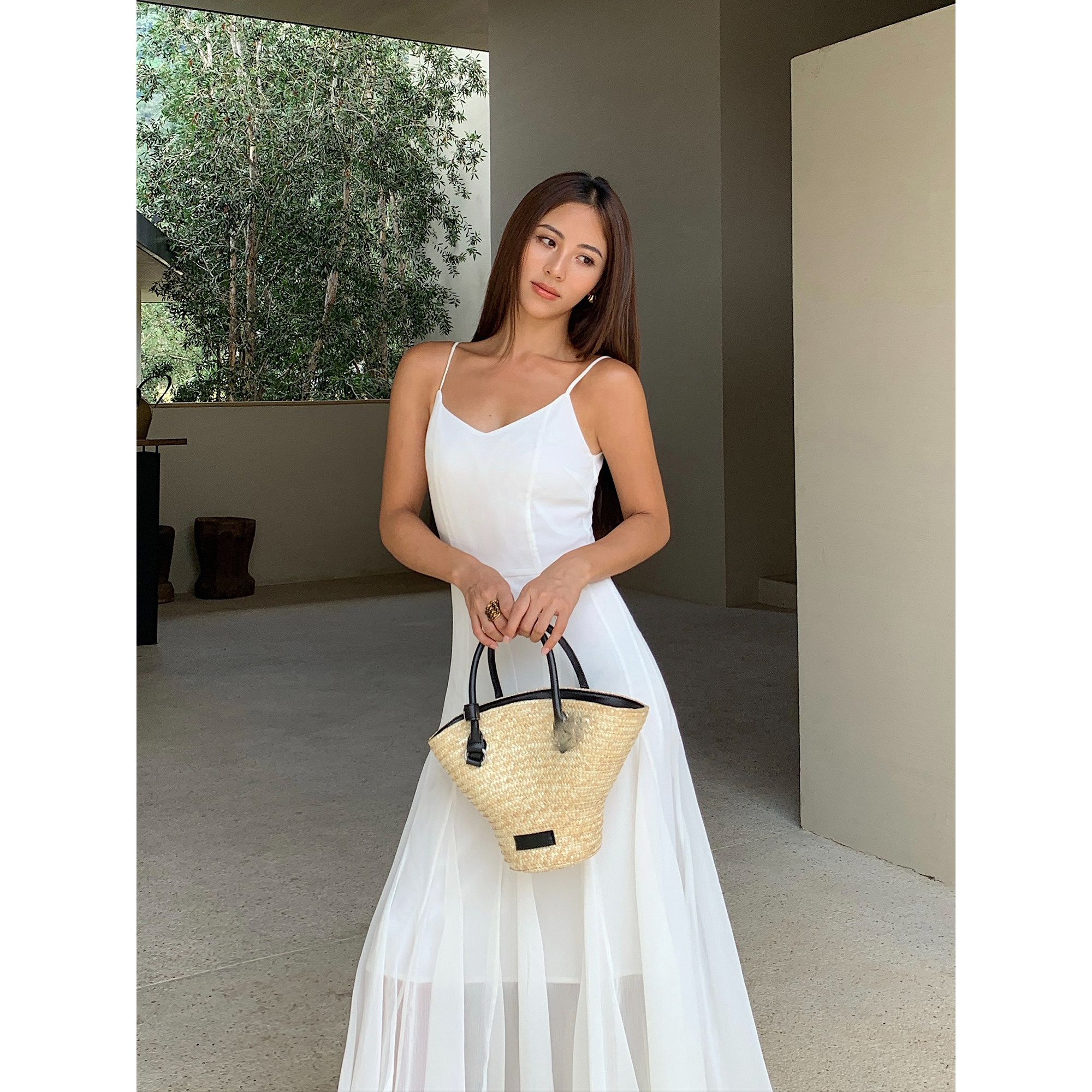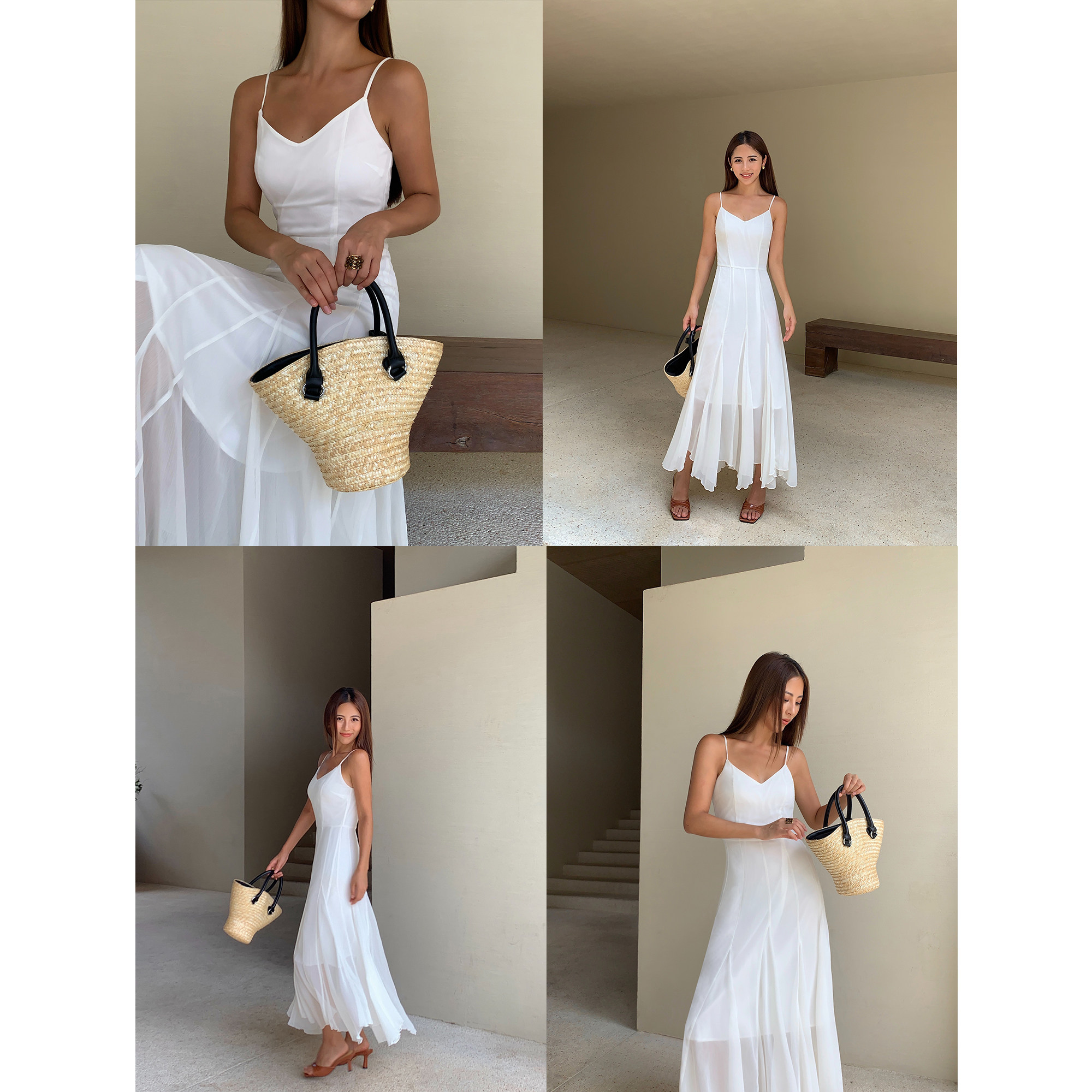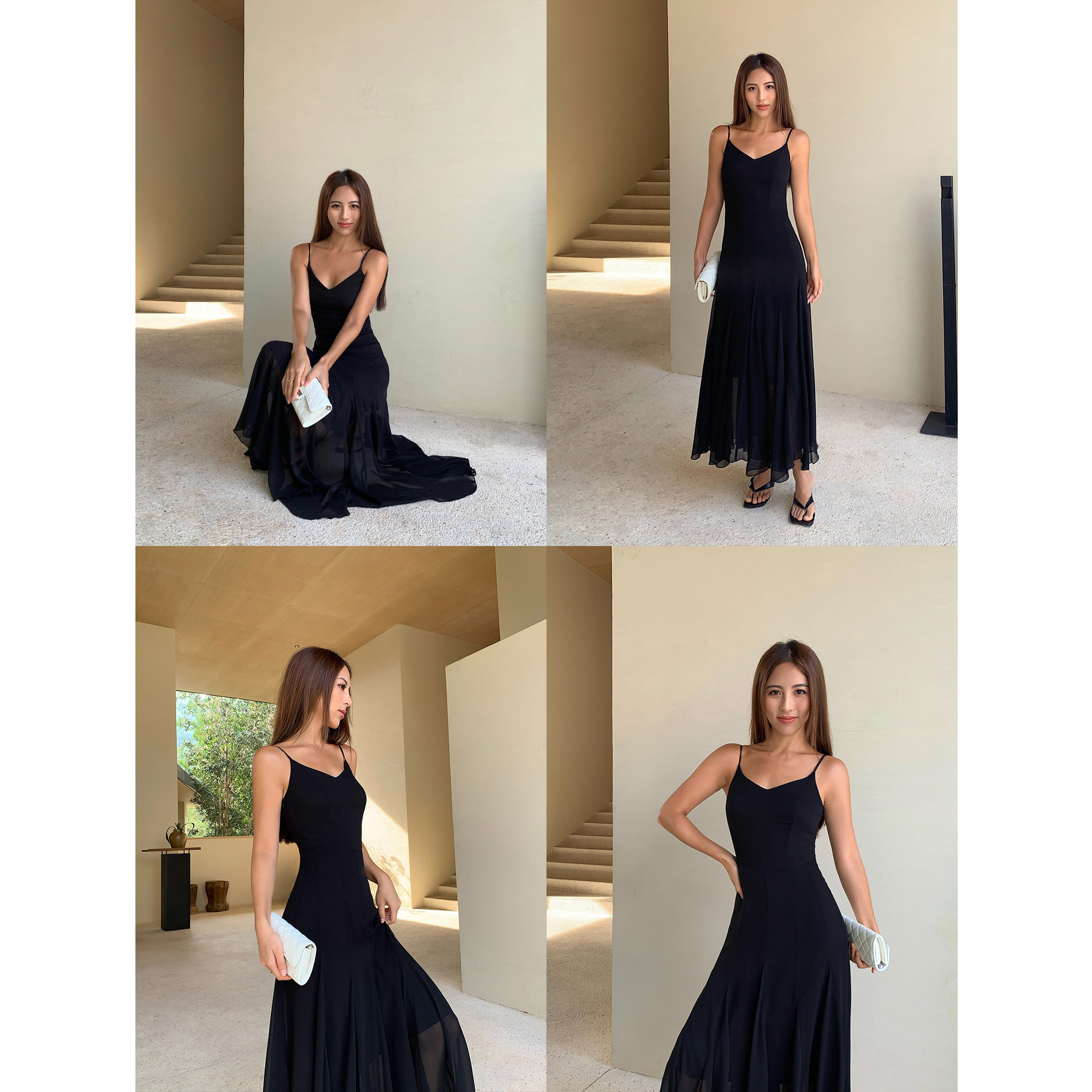NEVA HU【现货7折】V领吊带连衣裙女夏气质鱼尾纱裙收腰长款裙子