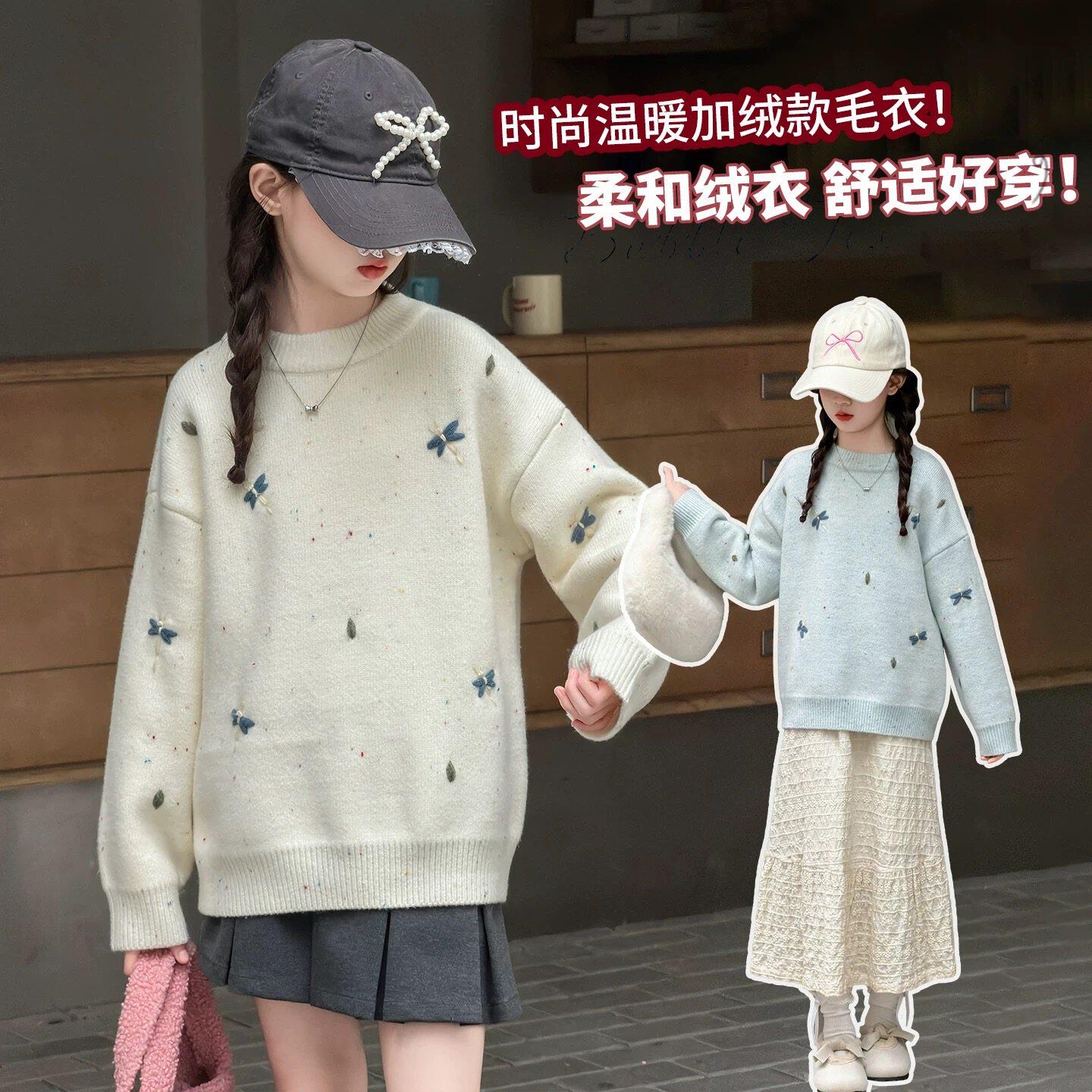 女童加绒毛衣秋冬2026新款洋气儿童冬装加厚大童女孩针织打底衫潮
