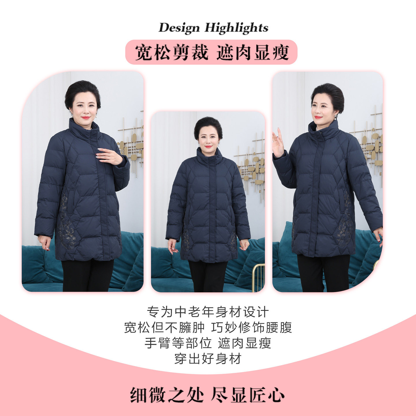依佈中老年女士冬装新款鹅绒服妈妈装加厚保暖中长款羽绒服外套