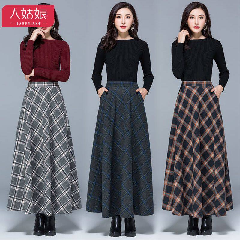 冬季新款长裙冬裙大码女装毛呢半身裙a字裙冬装长款裙子女冬秋冬