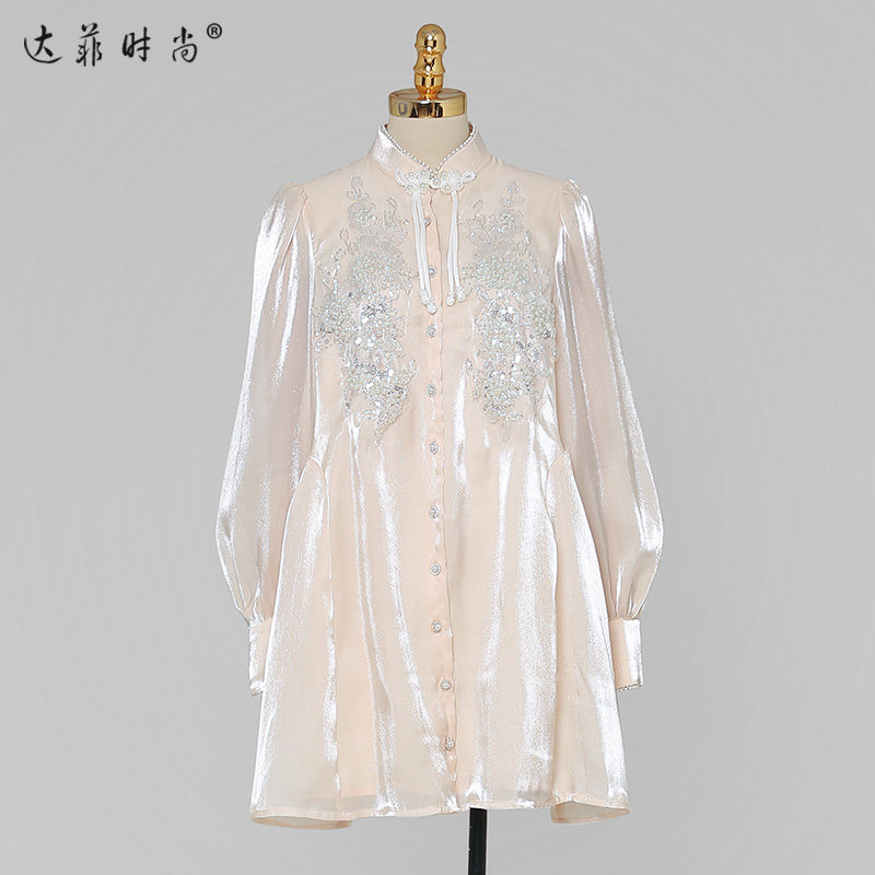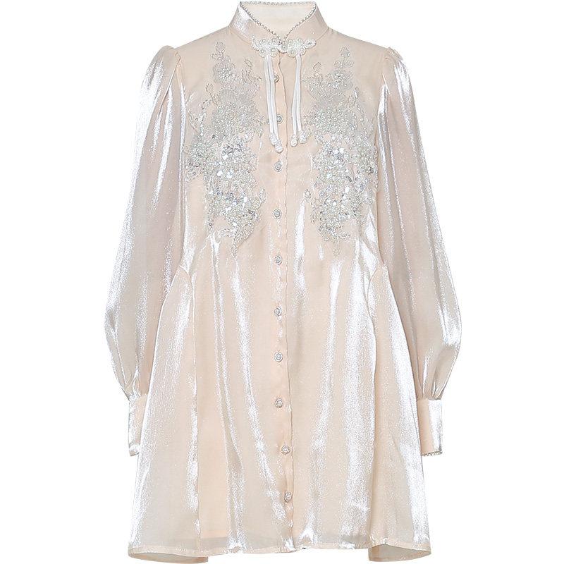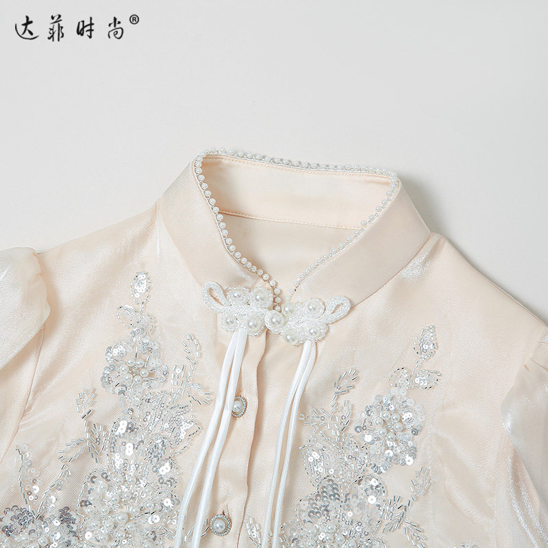 Q2026早春新款女装新年国风唐装重工刺绣珍珠欧根纱衬衫连衣裙女