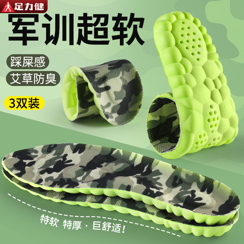 足力健运动军训鞋垫吸汗防臭艾草除臭留香内增高减震按摩男女鞋垫