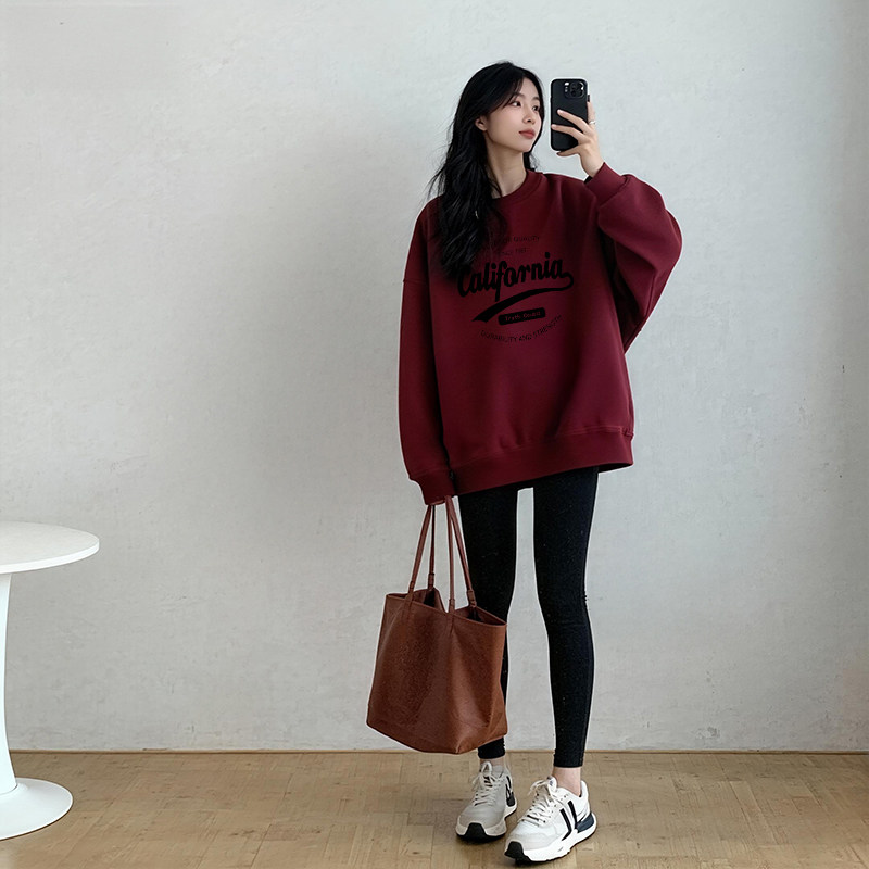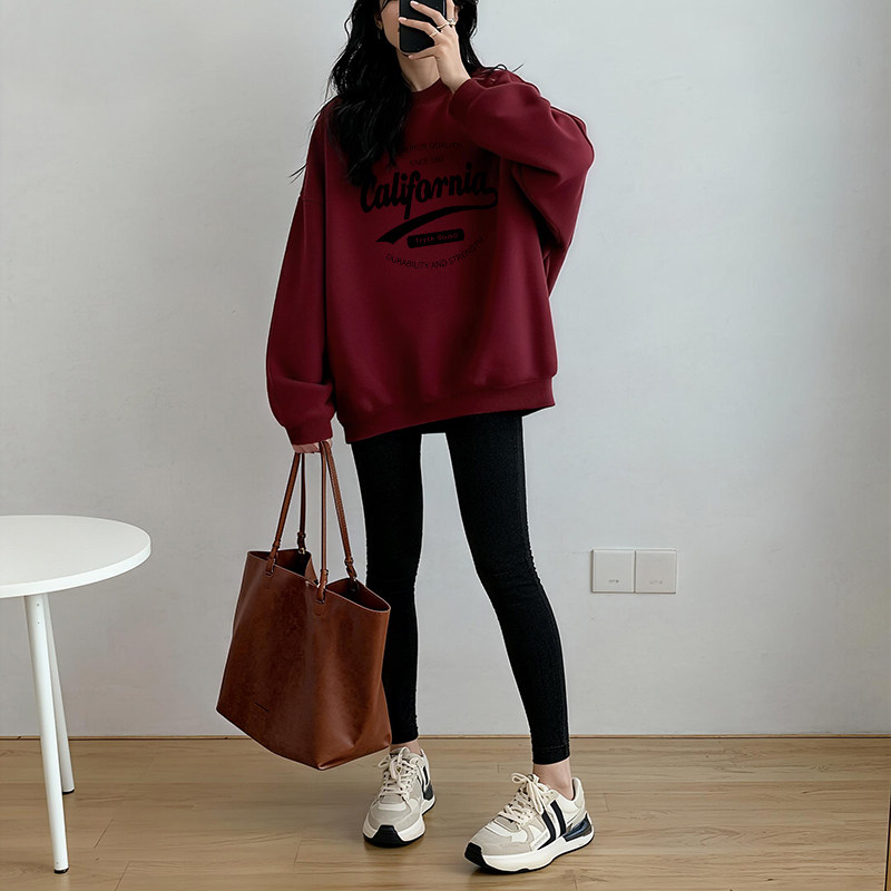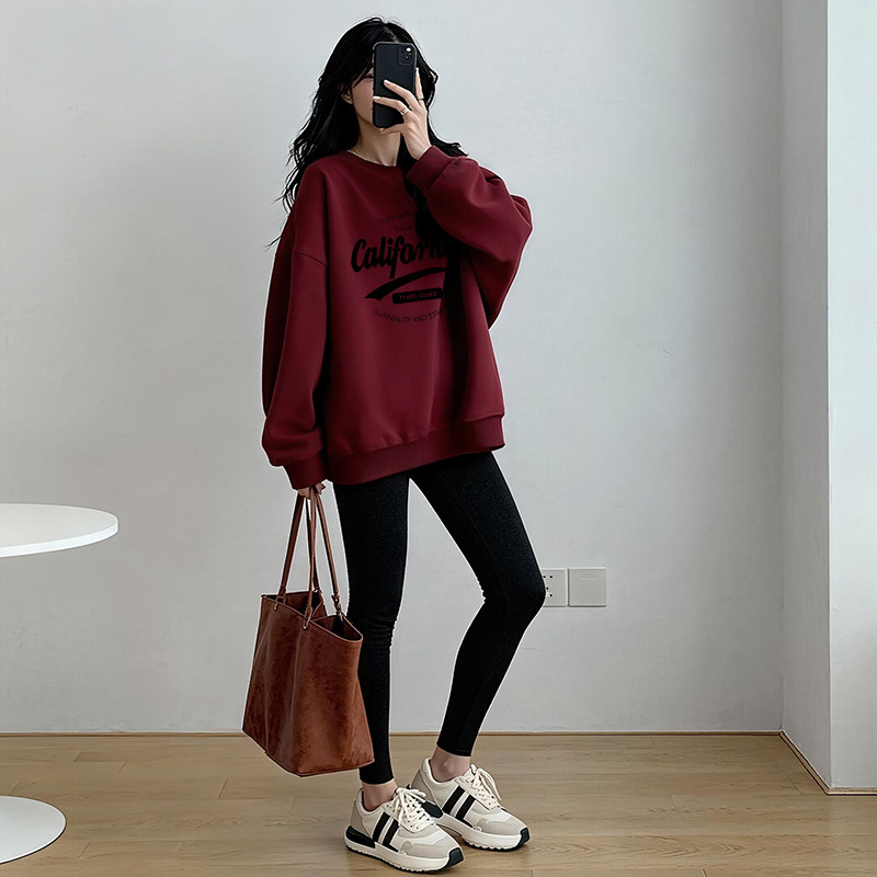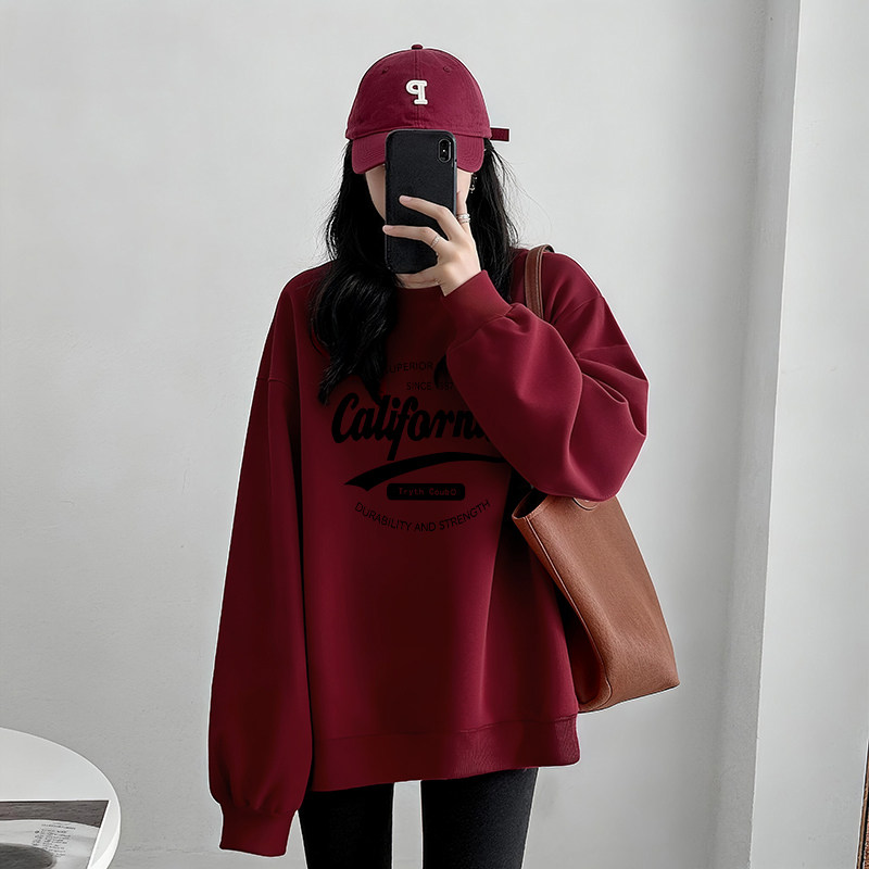 加绒卫衣女款2026新款无帽套头宽松慵懒风大码胖mm显瘦红色上衣女