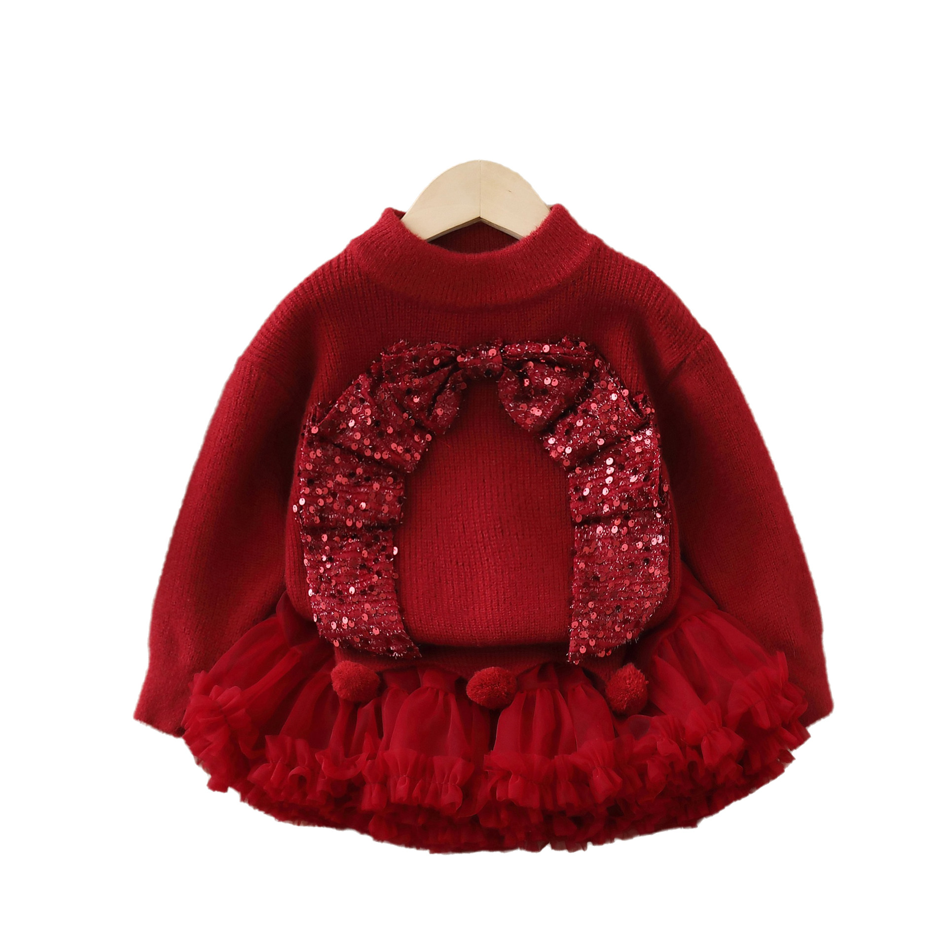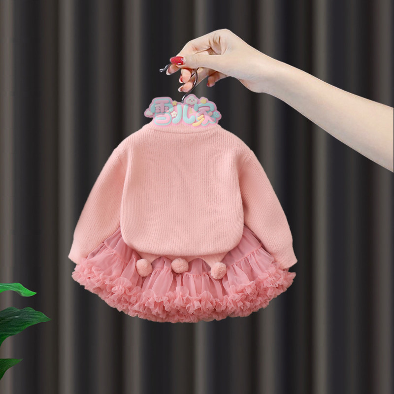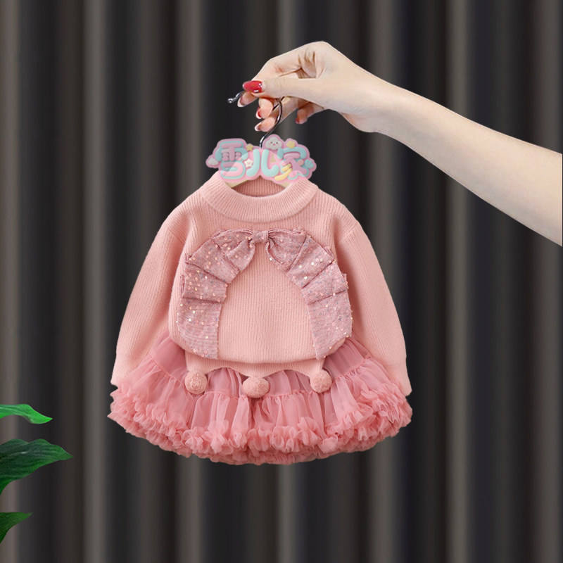 周岁女宝礼服女童冬季连衣裙套装婴儿抓周宴新年毛衣tutu裙公主裙