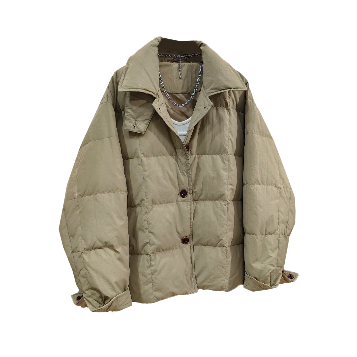 韩系复古卡其色羽绒服女2025冬新款宽松显瘦保暖面包服短款外套潮