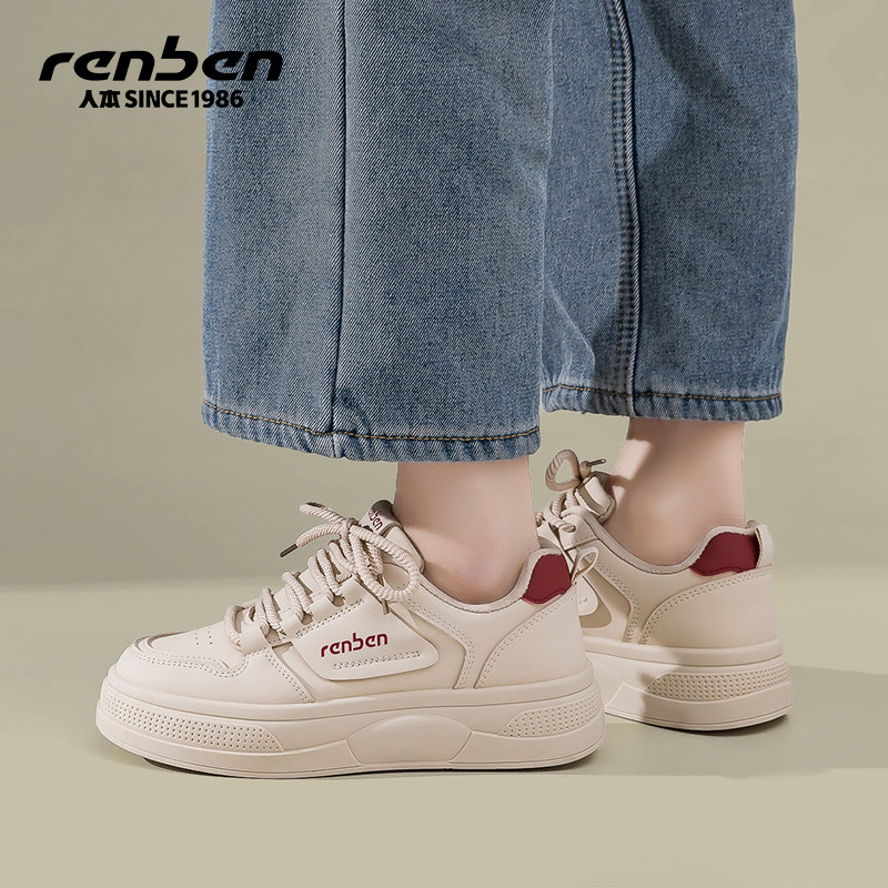 人本厚底小白鞋女款春季2026新款爆款休闲鞋百搭小众学生白色板鞋