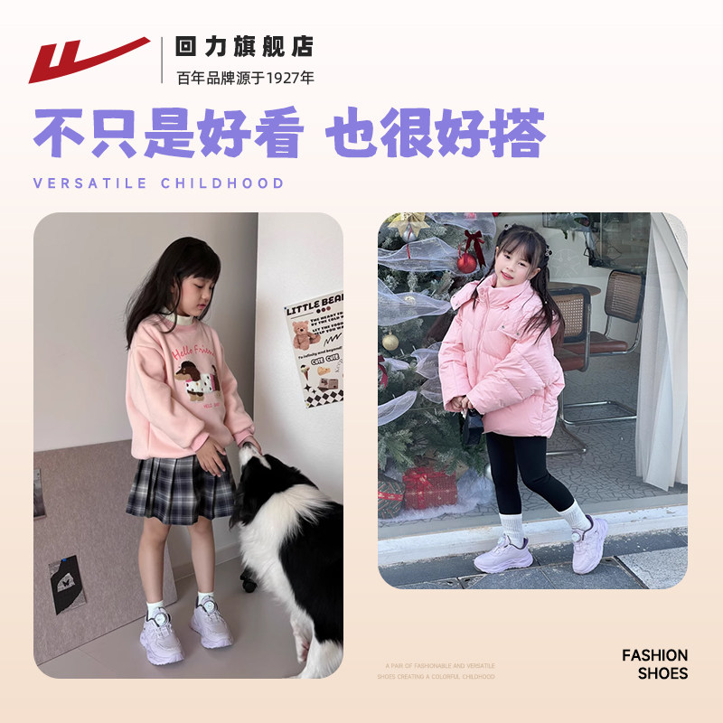 回力童鞋儿童校园运动鞋男女童2026冬季新款皮面软底加绒跑步鞋子