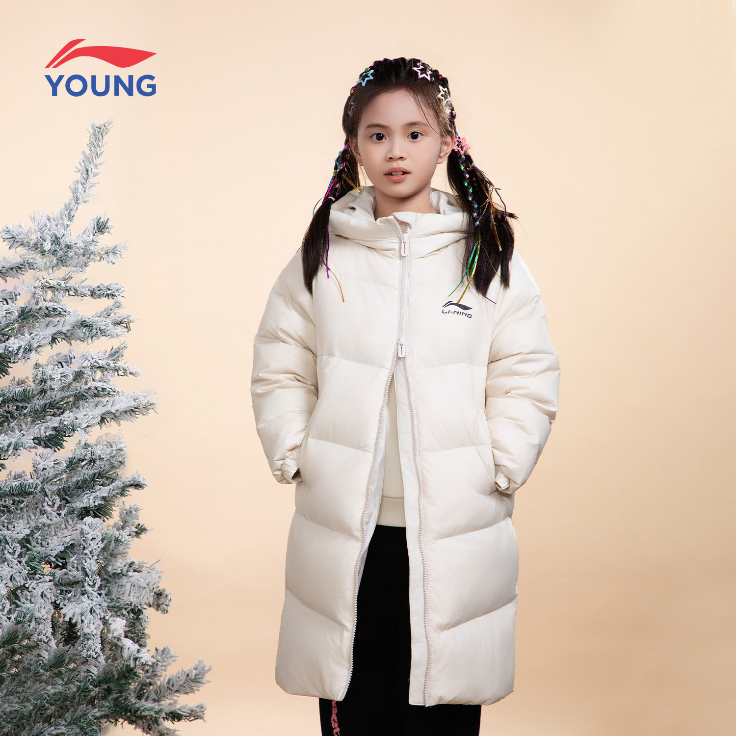 李宁儿童中长款羽绒服2026冬季款男女小大童户外防风保暖运动外套