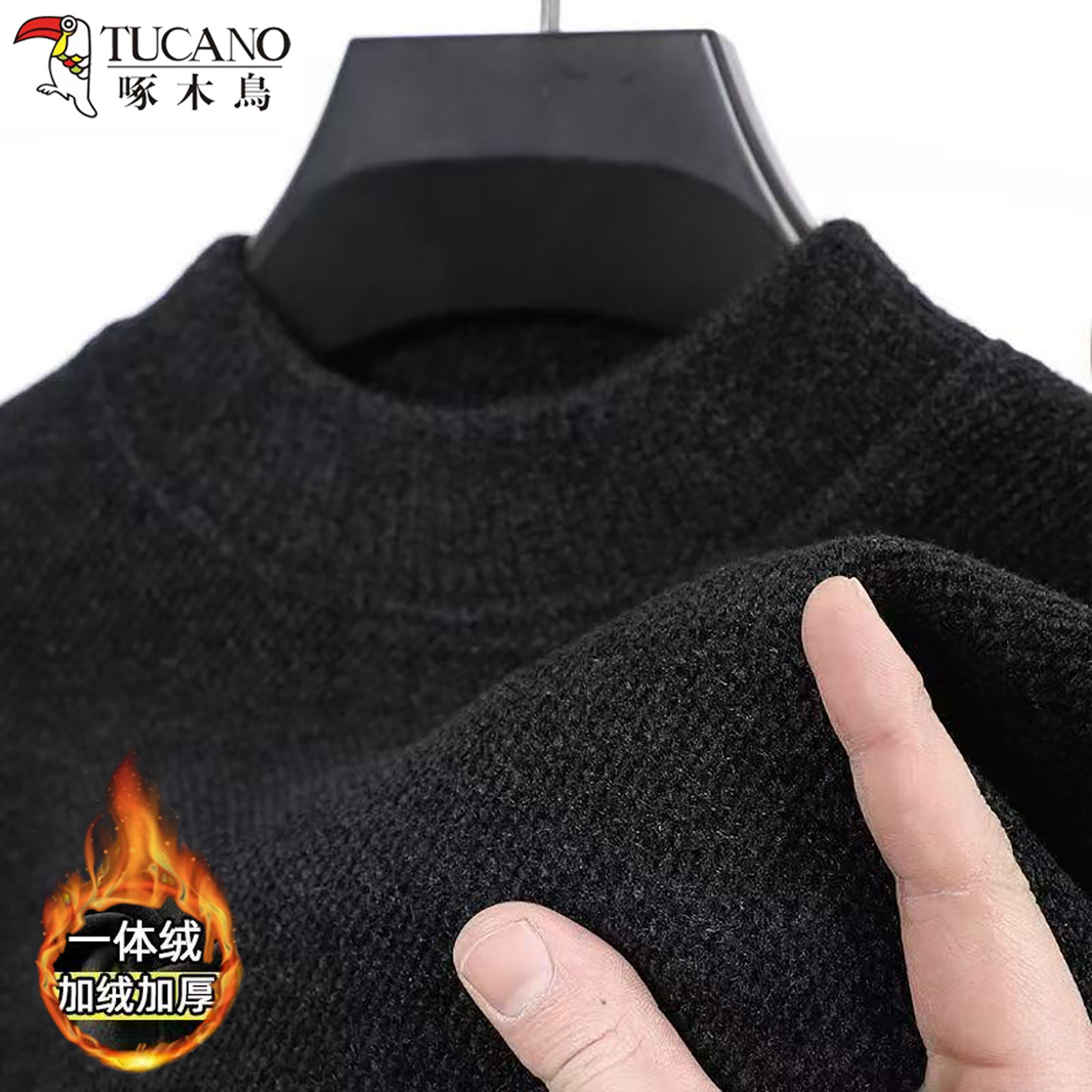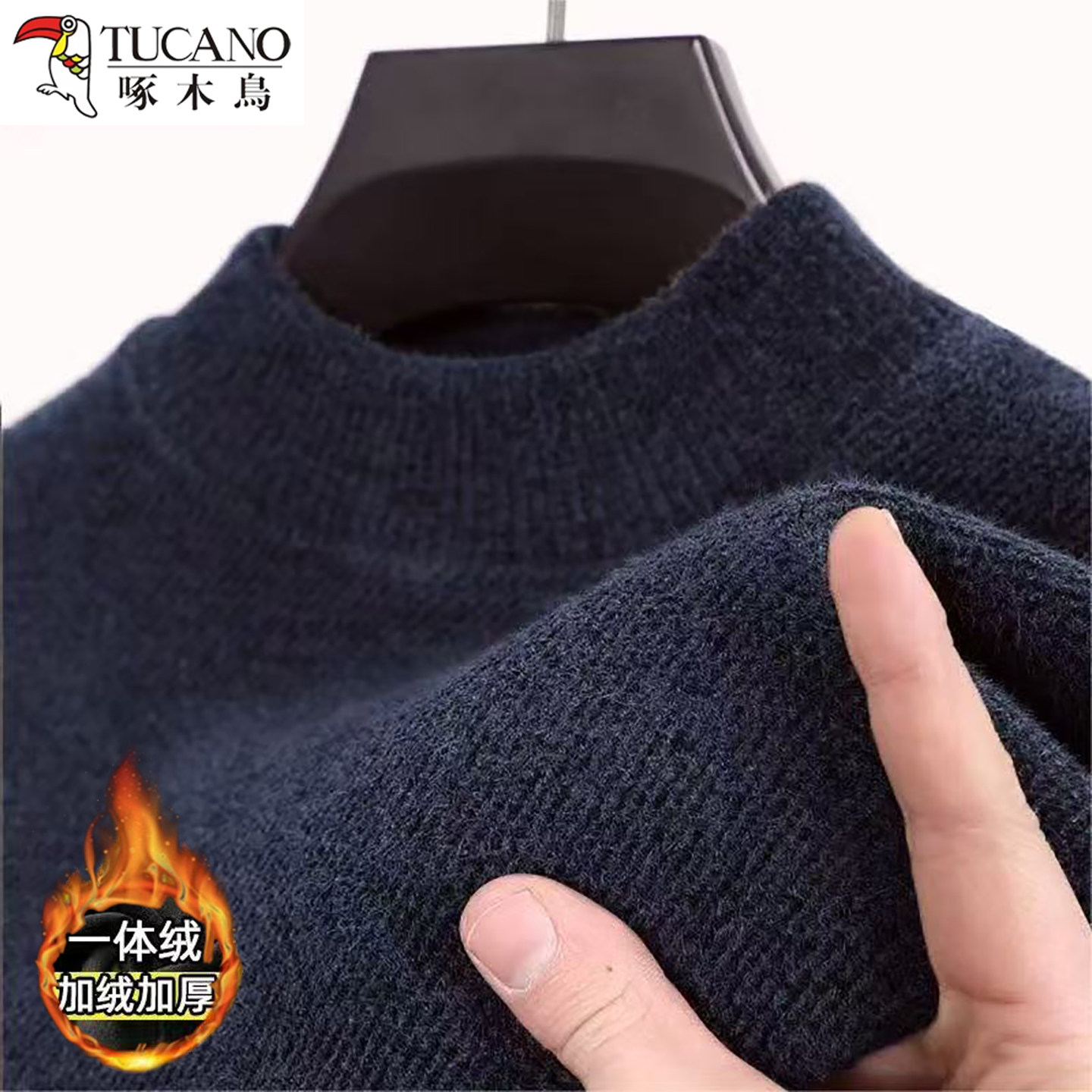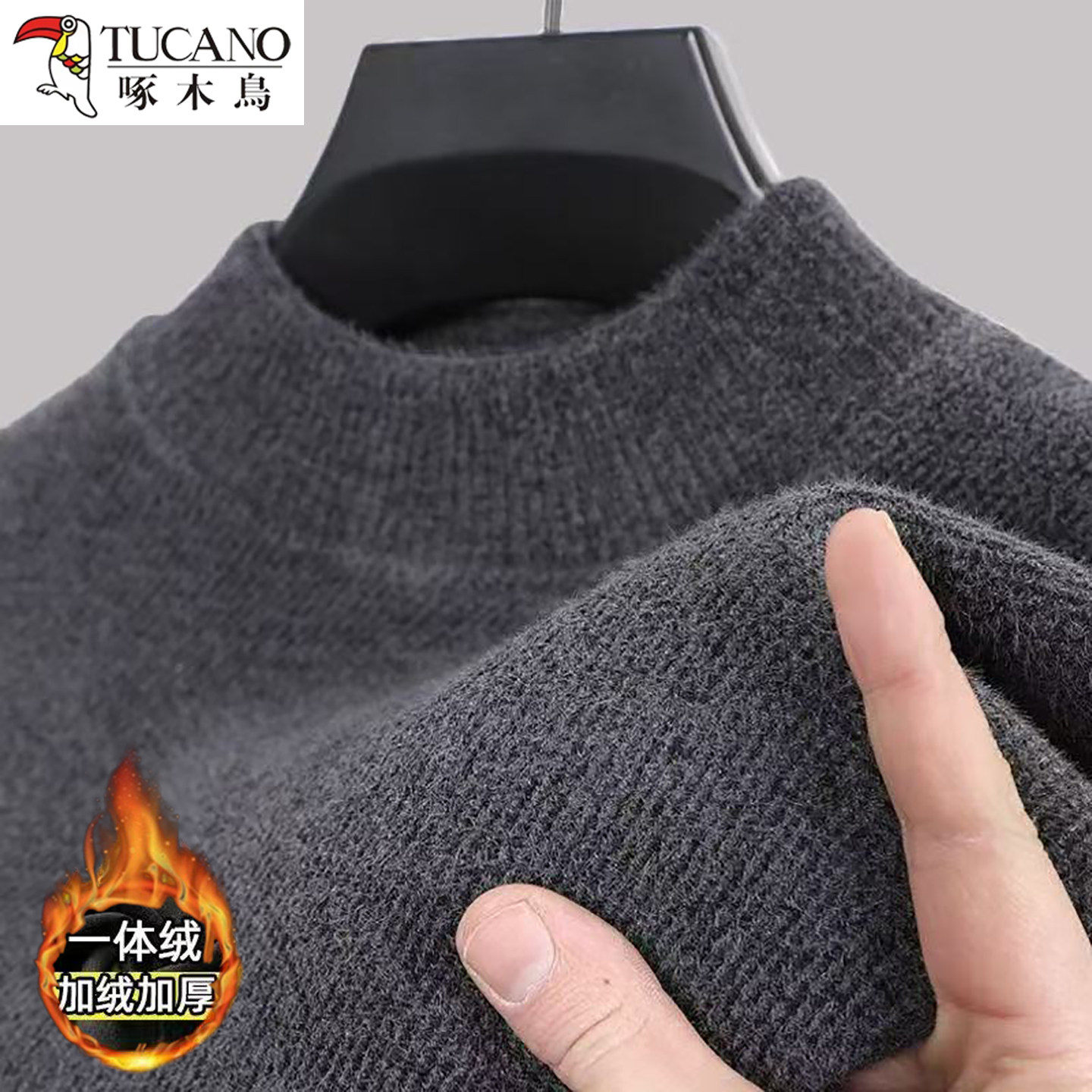 啄木鸟半高领毛衣男士冬季2025新款加绒加厚保暖雪尼尔针织衫男款
