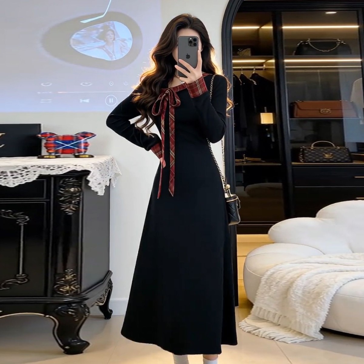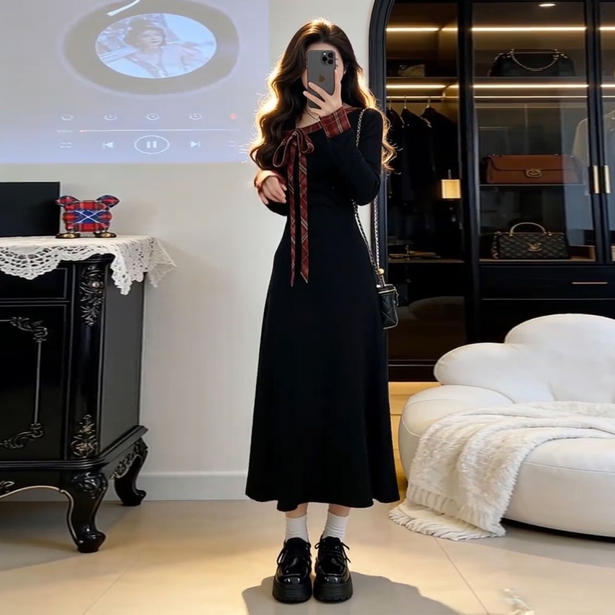 法式黑色针织连衣裙子女秋冬季2026新款巨好看高级感内搭收腰长裙