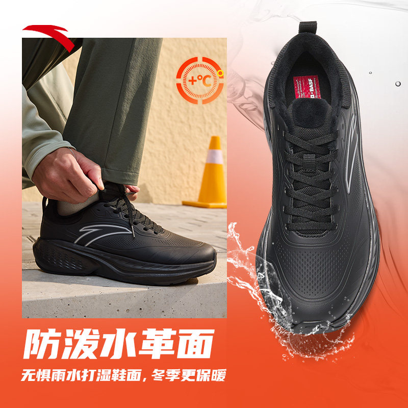 311线报网描述:安踏云途跑鞋男鞋皮面加绒保暖鞋男运动鞋子