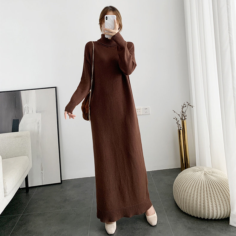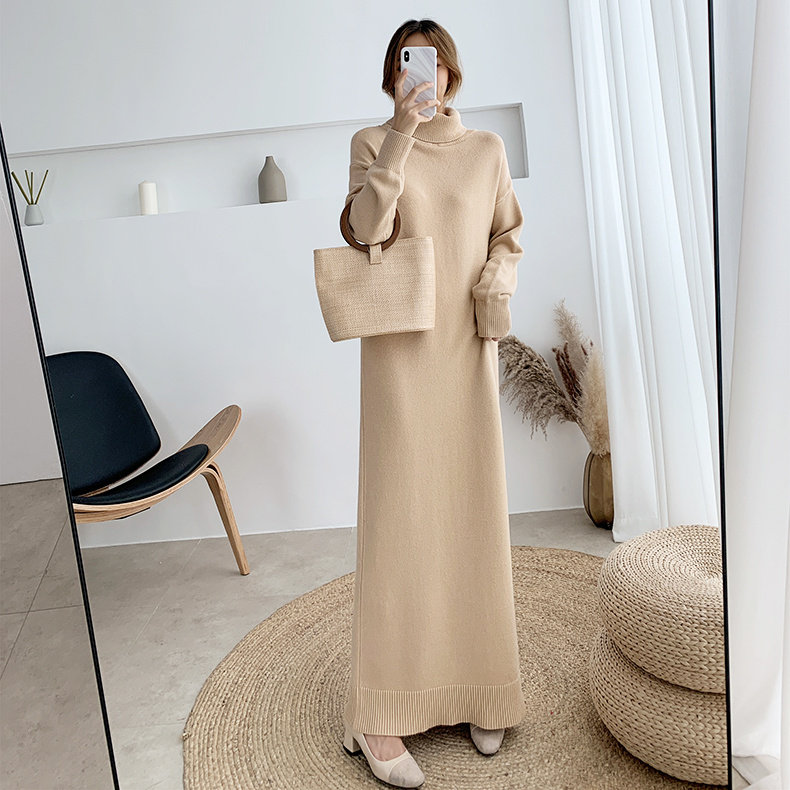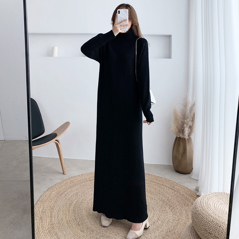 高领针织连衣裙女秋冬慵懒风长款胖MM配大衣毛衣内搭打底裙300斤