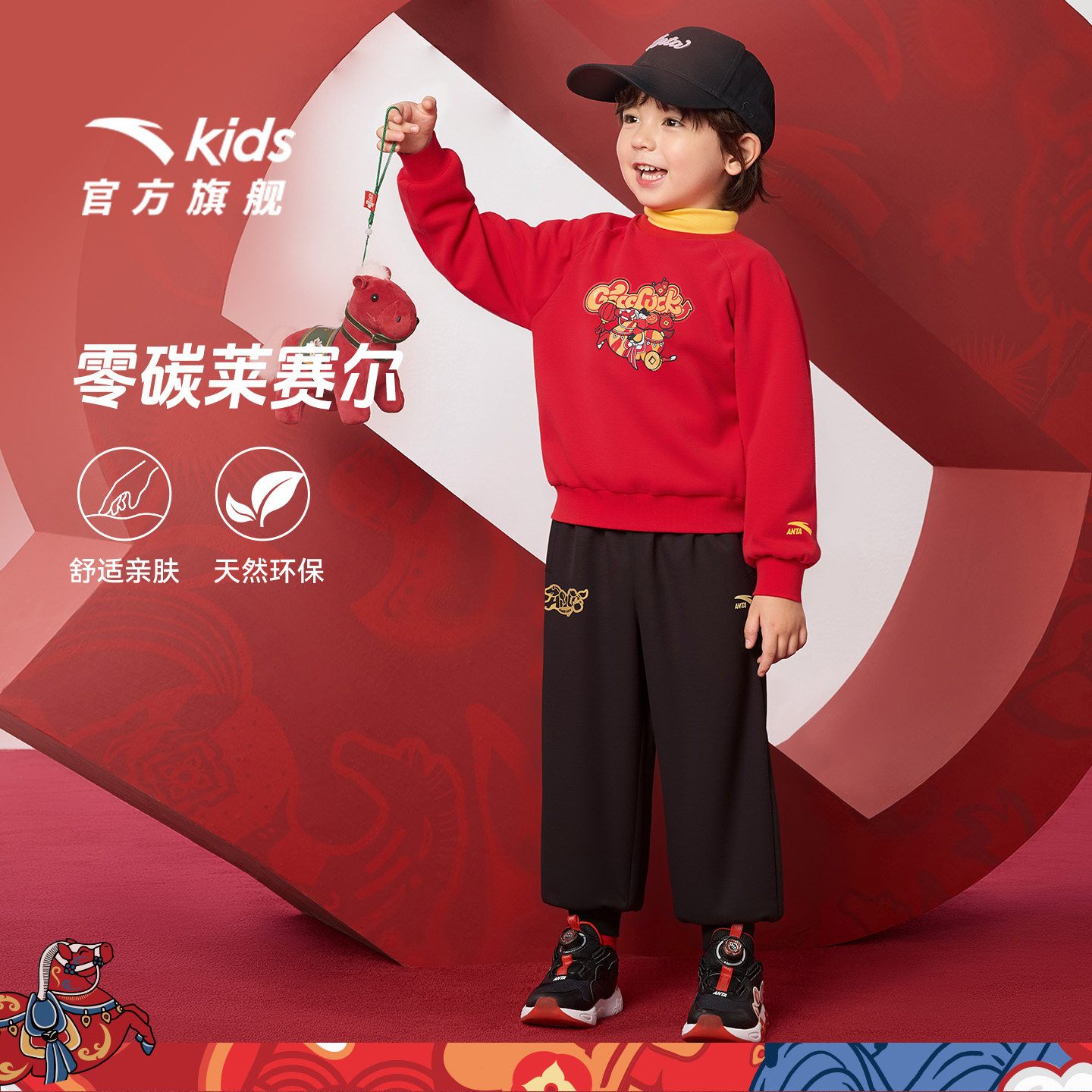 【马年红色新年】安踏男童宝宝套装卫衣卫裤时尚两件套2026拜年服