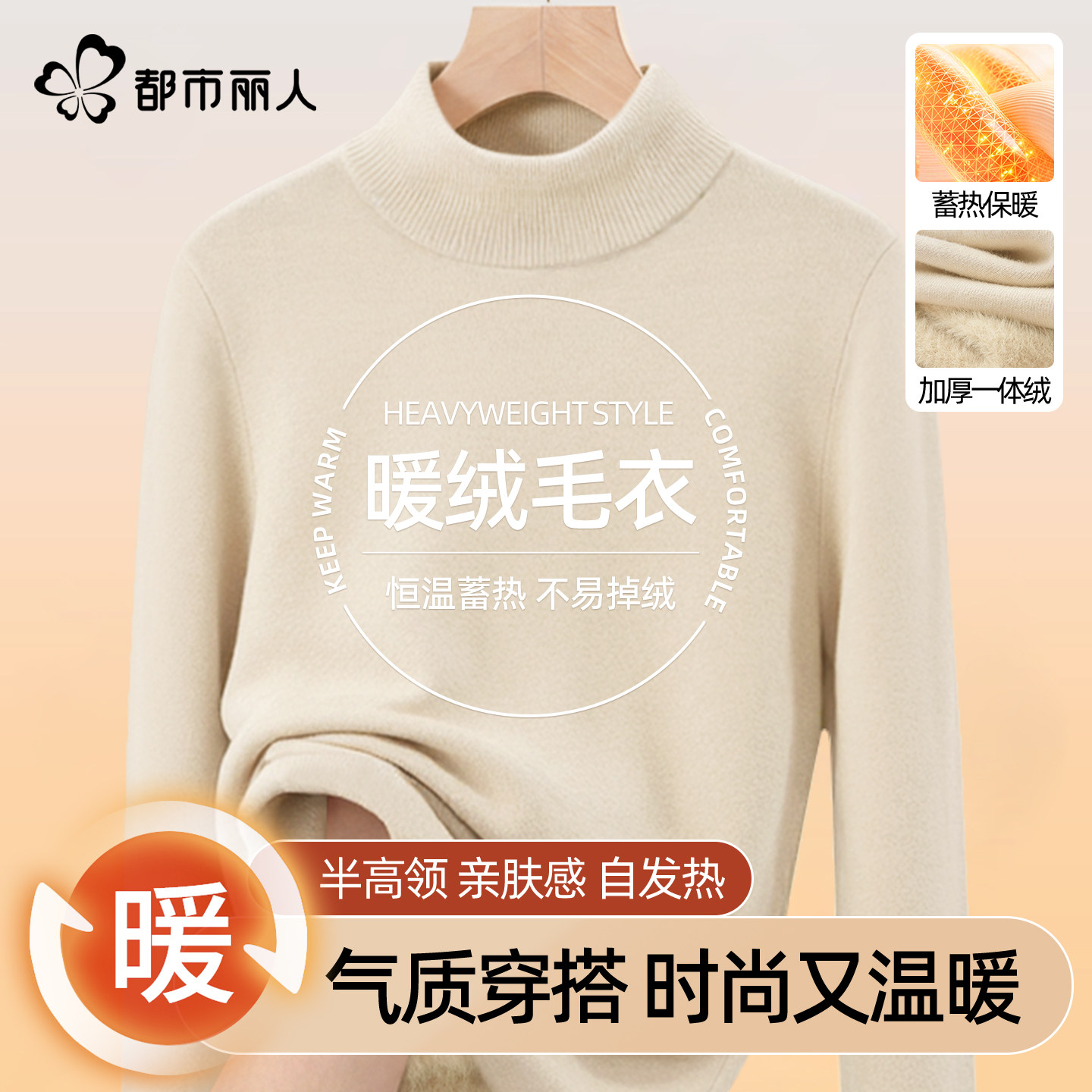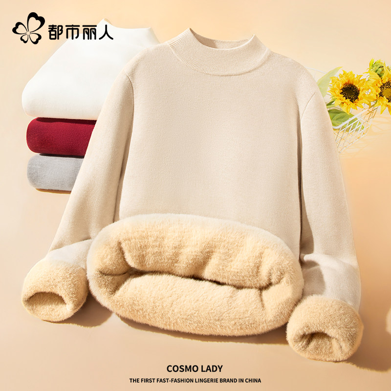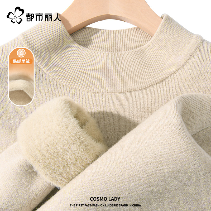 311线报网描述:都市丽人 加厚一体绒半高领毛衣 保暖蓄热