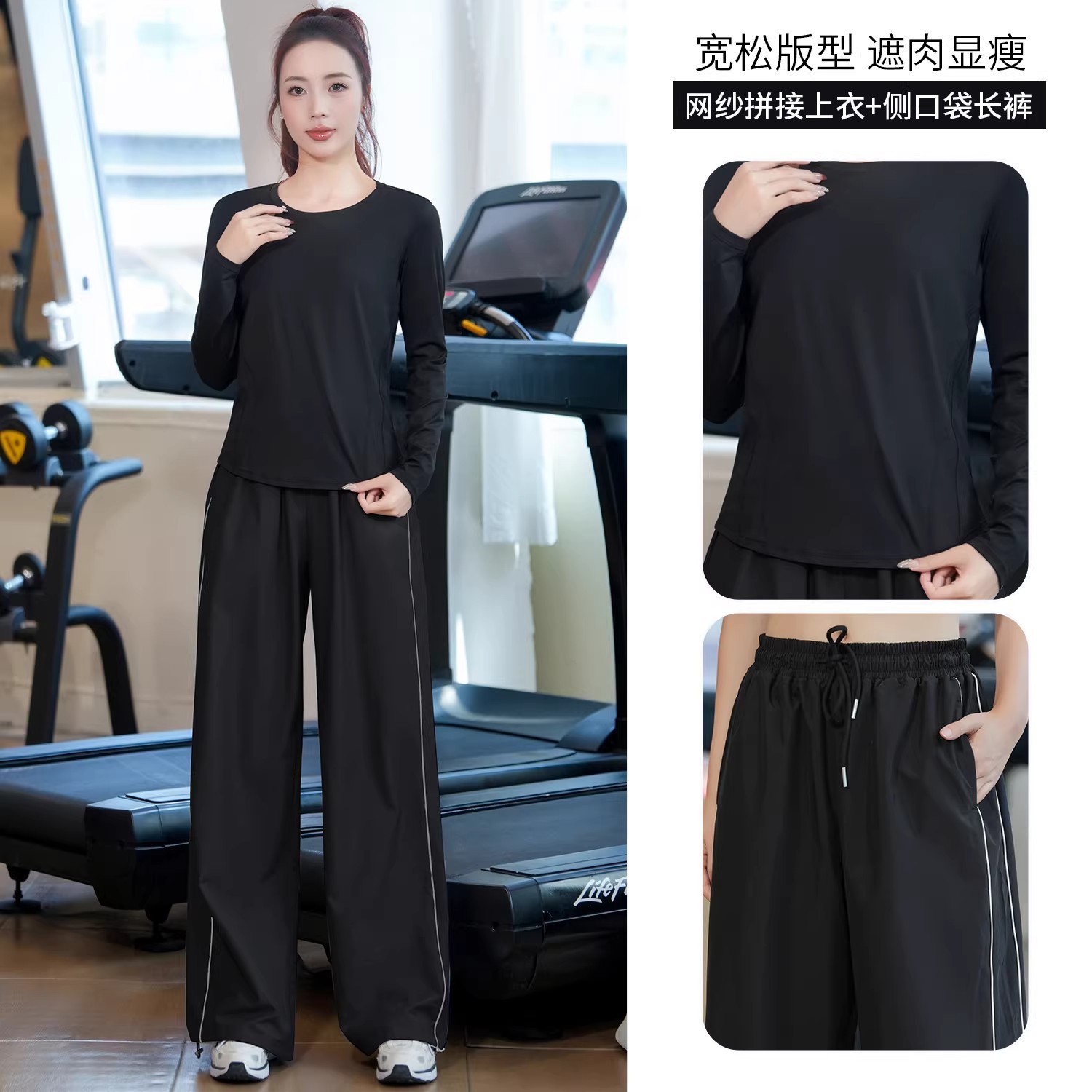德国春秋健身服女套装速干宽松羽毛球运动上衣户外跑步训练服长袖
