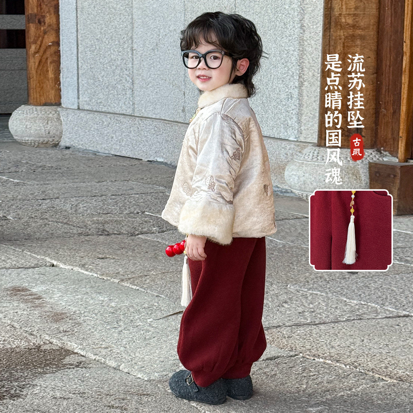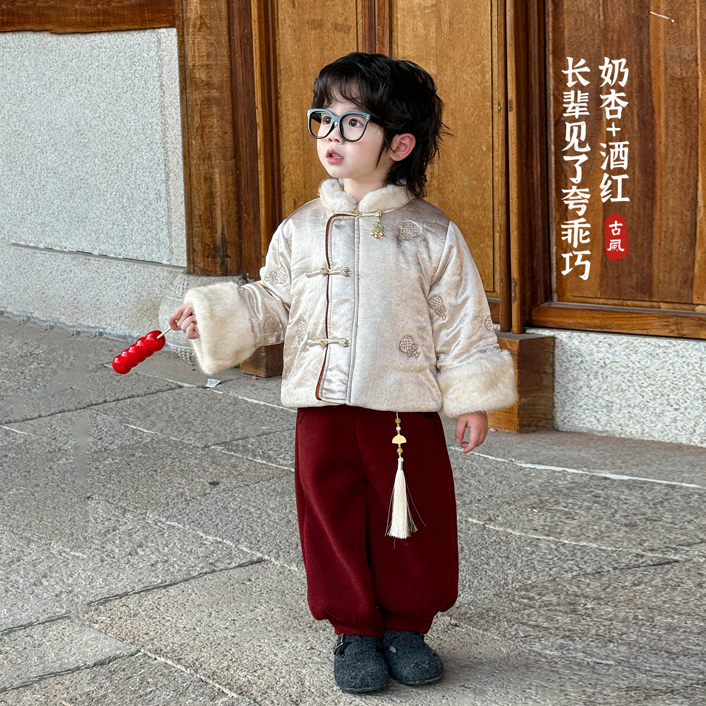 大小卷男童唐装套装冬季宝宝拜年服国风汉服新年儿童新中式两件套