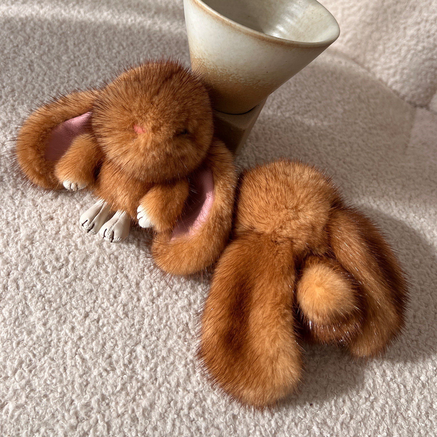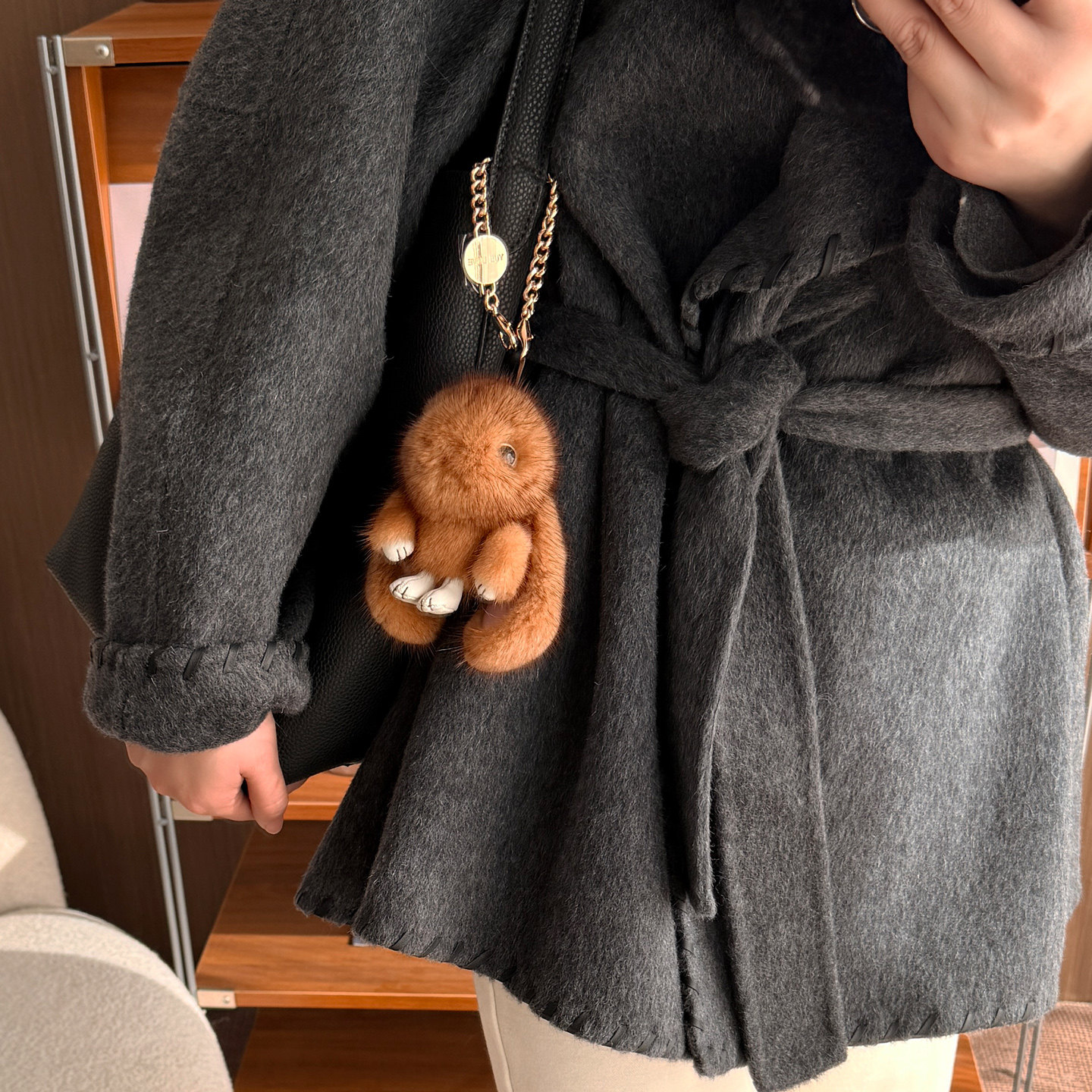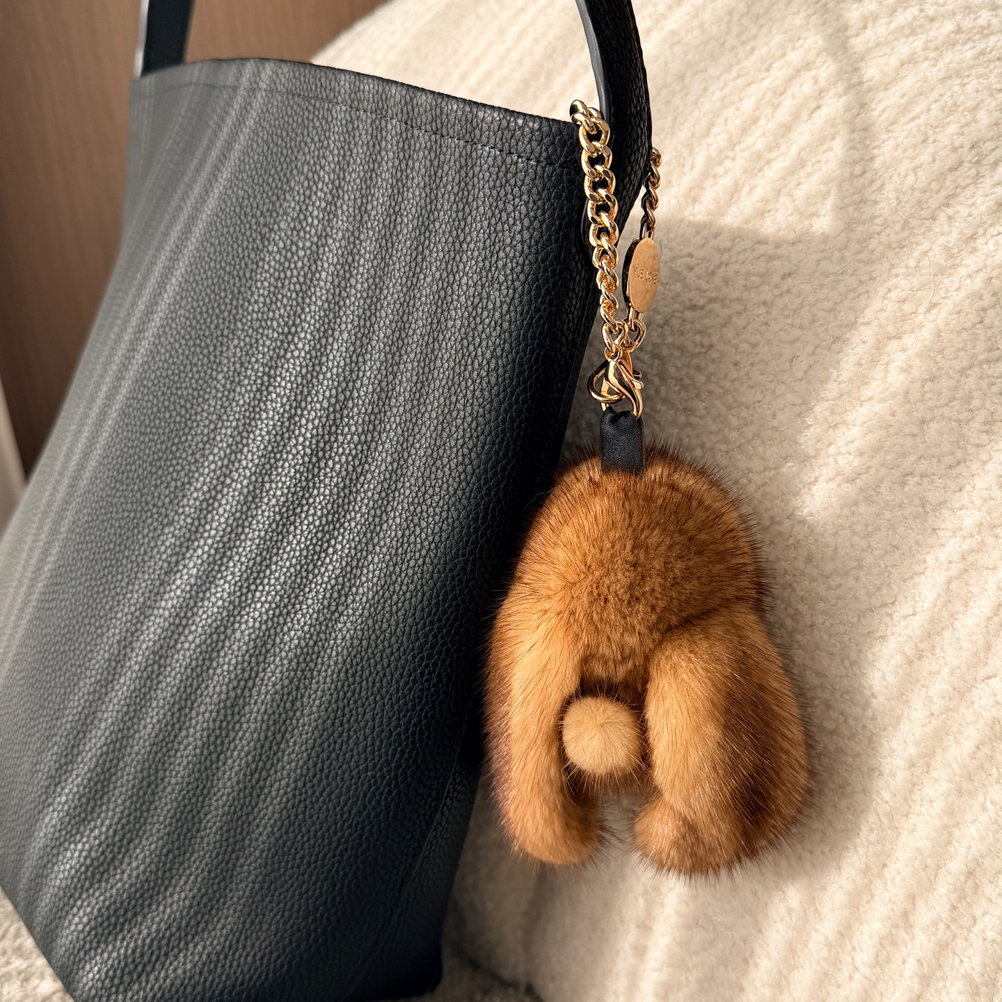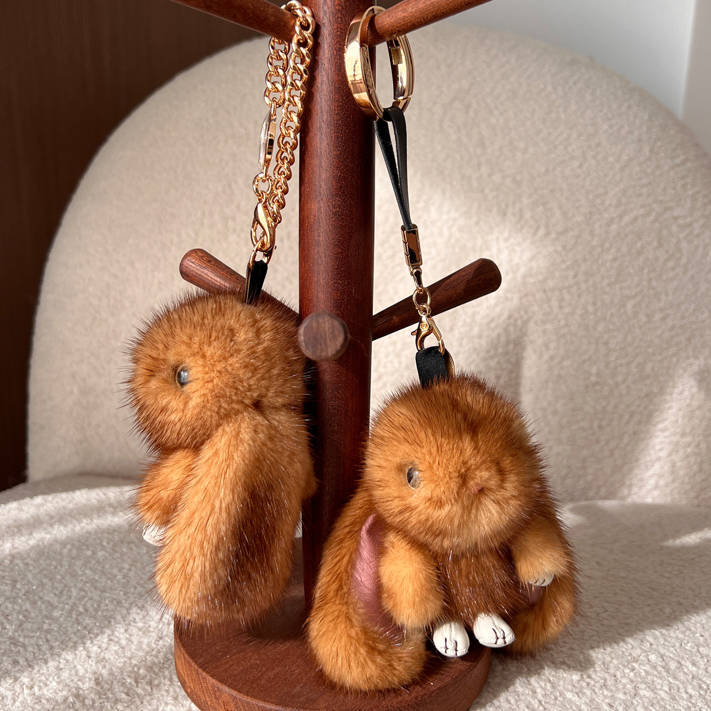 可爱进口水貂毛小兔子毛绒挂件包包钥匙扣汽车装饰公仔鎏金色定制