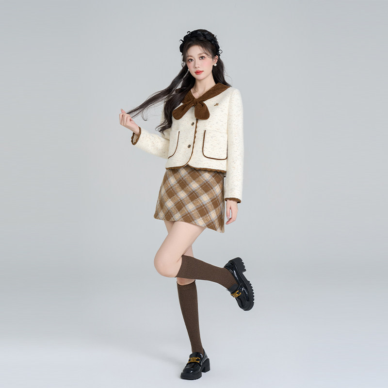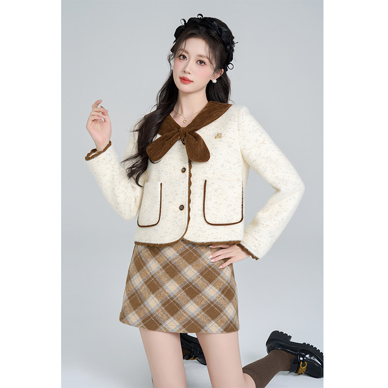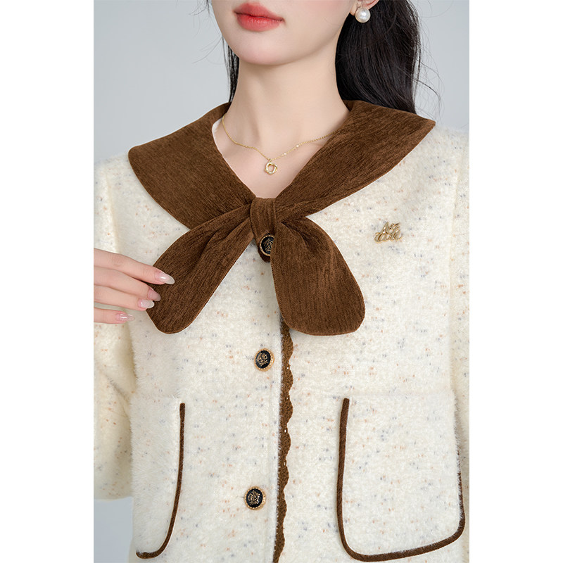 法式娃娃领毛绒绒加厚短外套女冬装新款小个子甜美气质小香风上衣