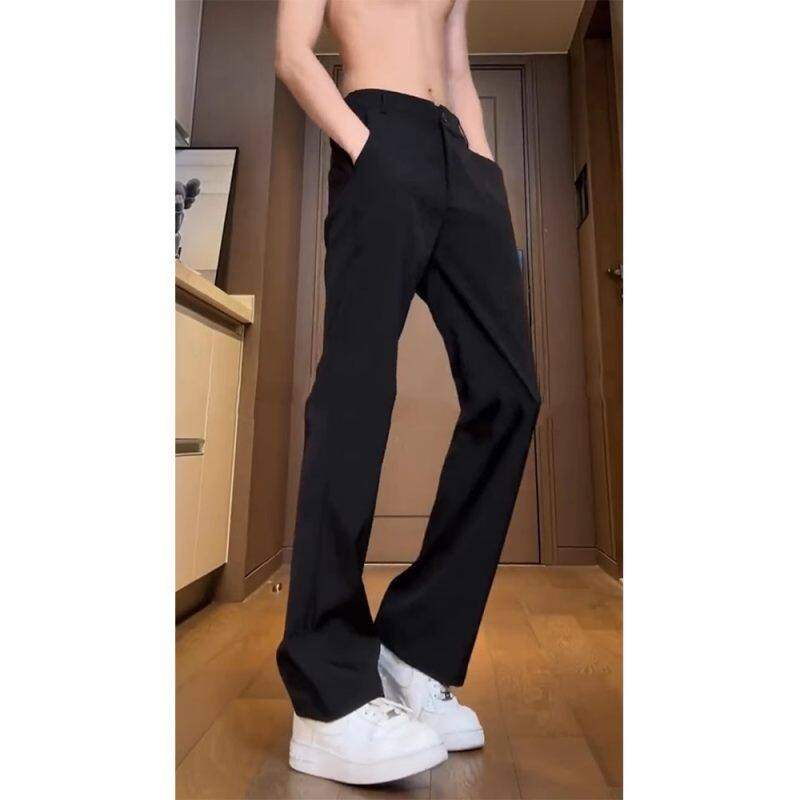 黑色微喇叭弯刀西裤垂坠感高级感修身裤子男款春秋休闲直筒西装裤
