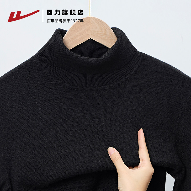 回力高领毛衣男士秋冬2025新款加厚老钱风针织打底衫男款黑色内搭