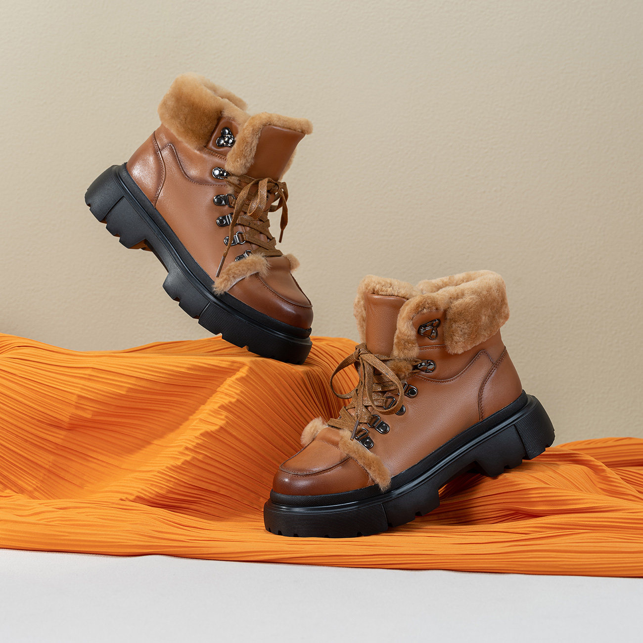 【运动皮鞋】奥康女鞋冬季新款加绒保暖马丁靴休闲百搭女靴