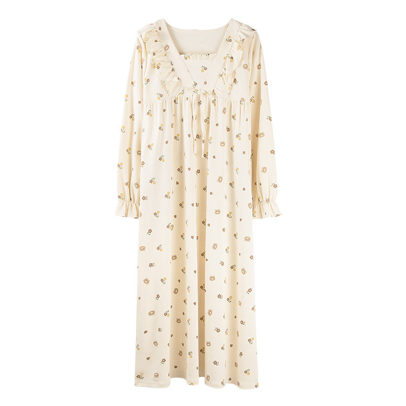 浪莎女士睡裙春秋纯棉长袖2026年新款秋天睡衣女全棉连衣裙家居服