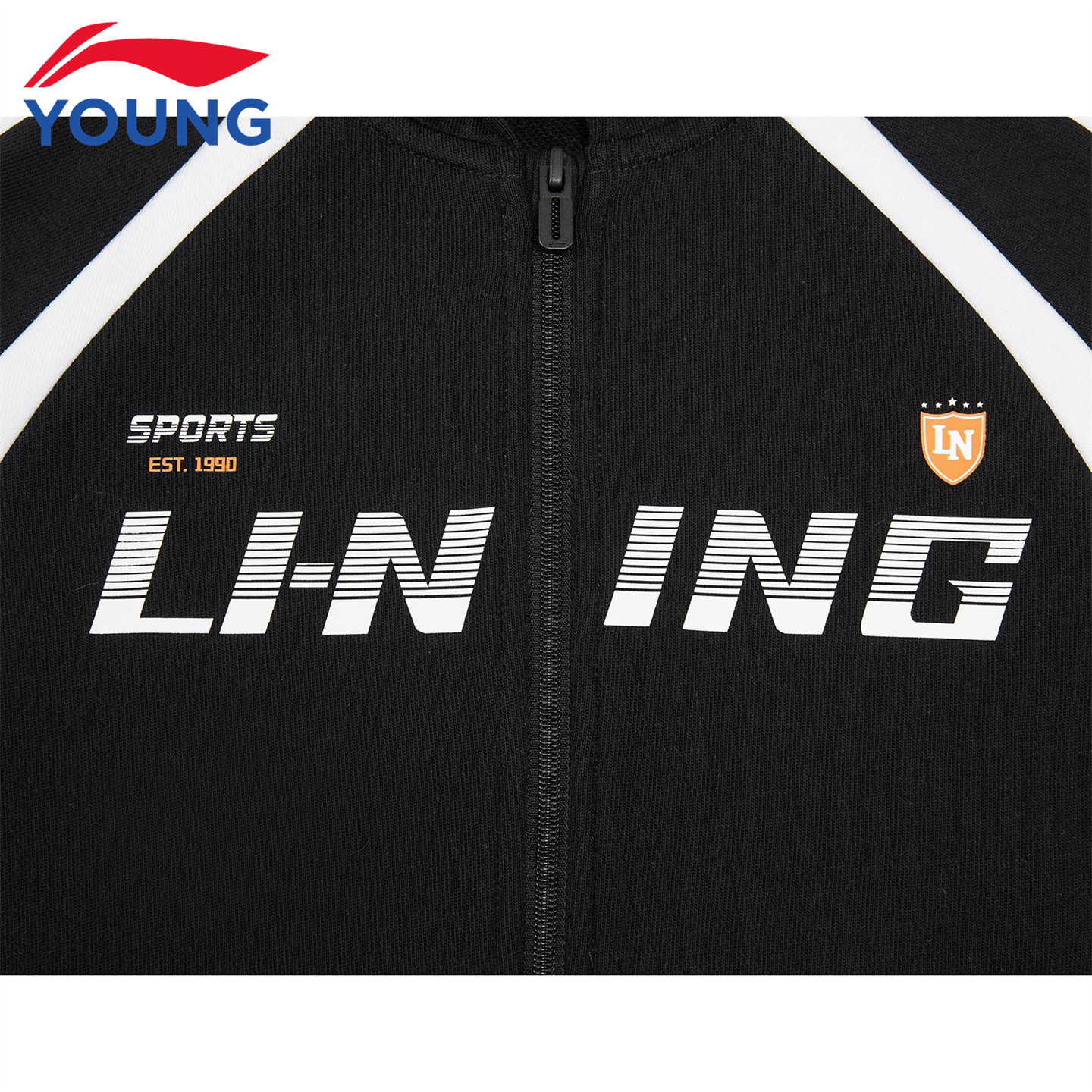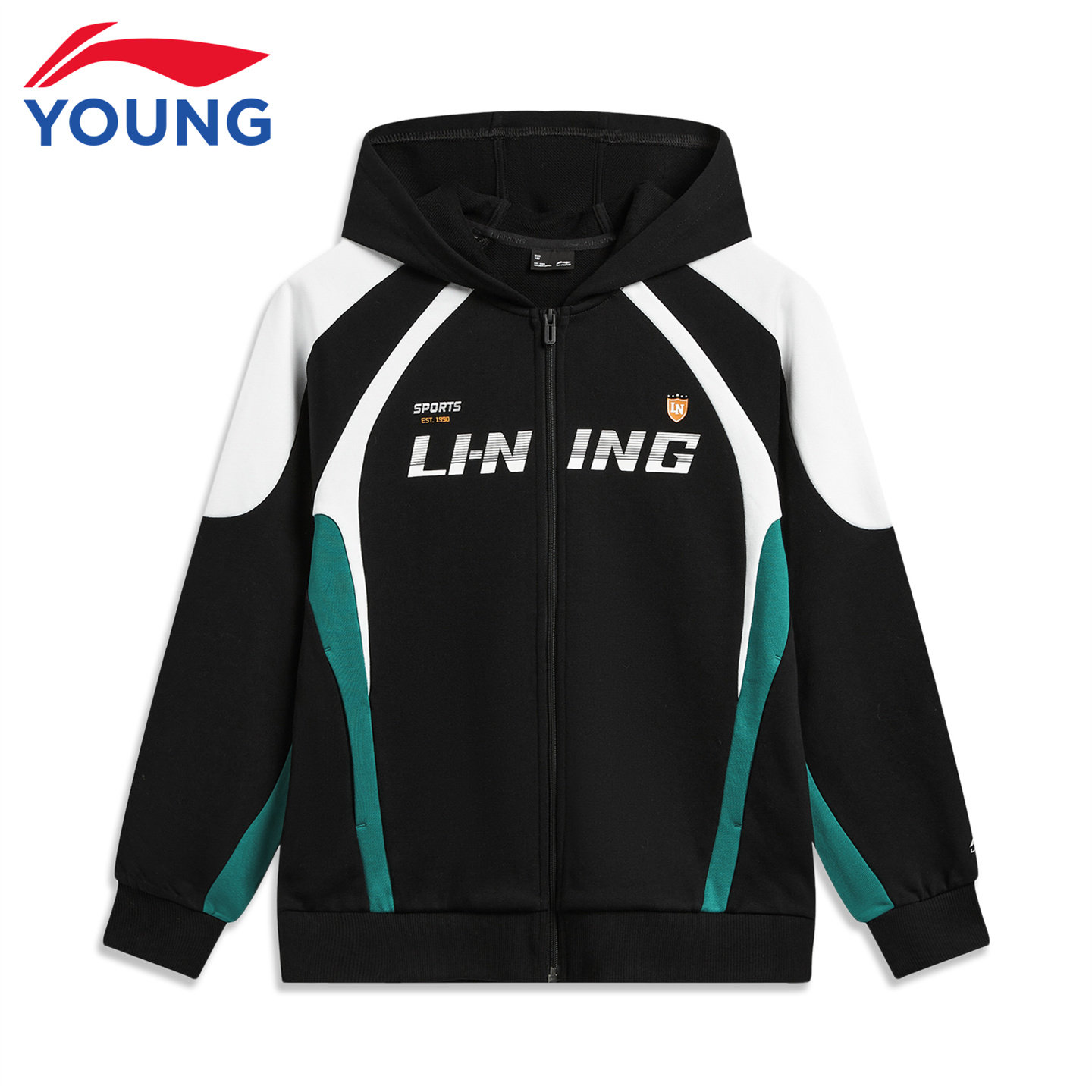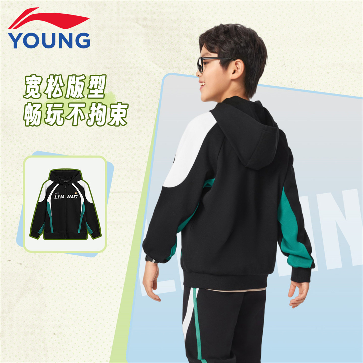 李宁童装男童外套卫衣连帽开衫2026春装新款儿童运动撞色百搭上衣
