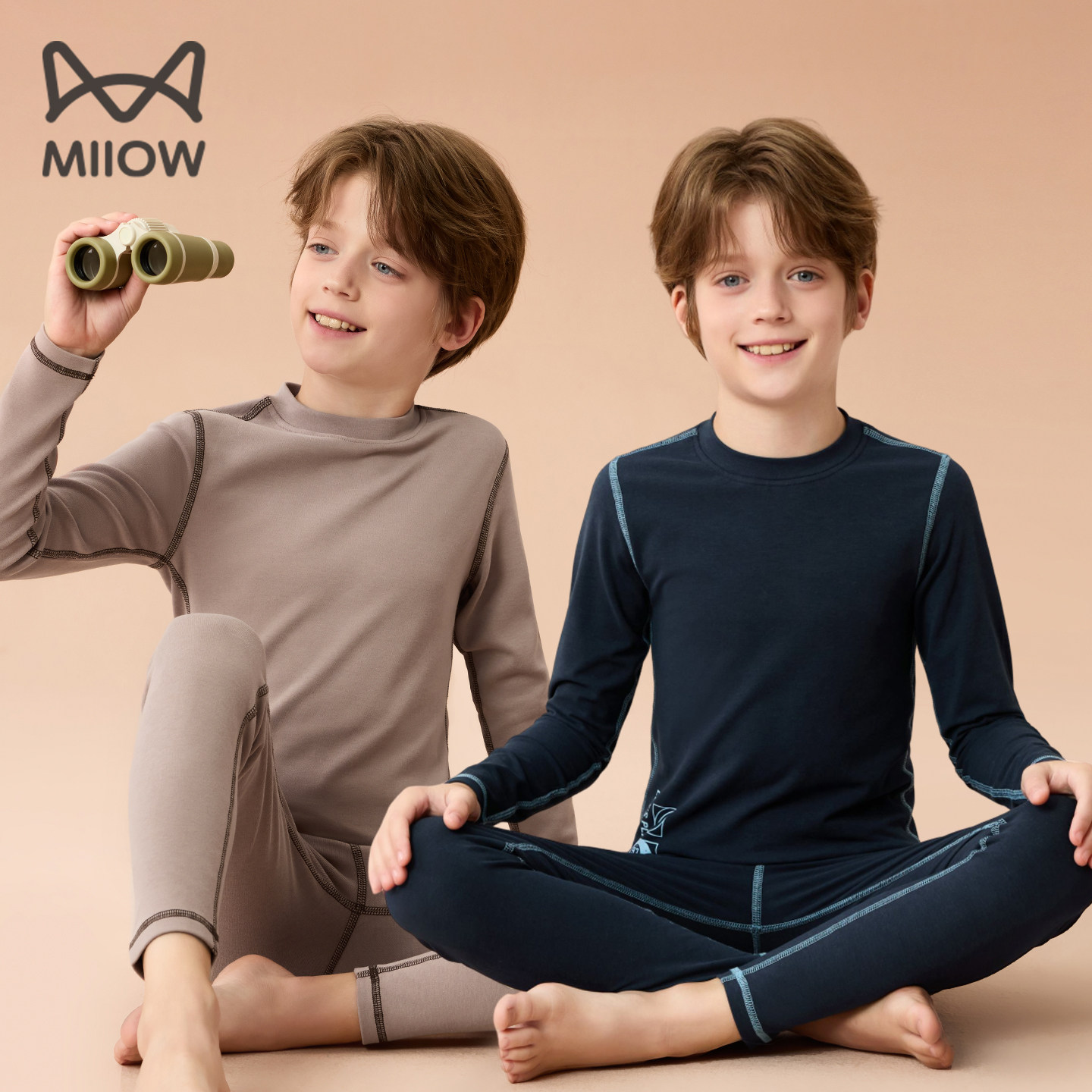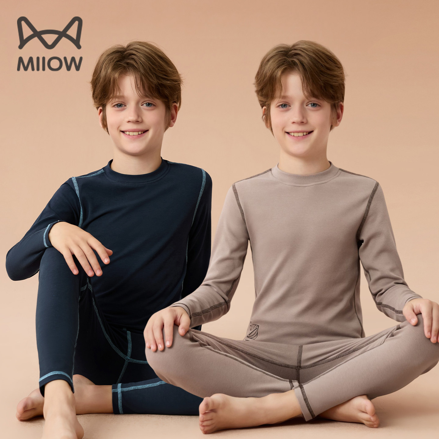 猫人男孩大童保暖内衣套装绒德儿童秋衣秋裤青少年加厚棉毛衫2025