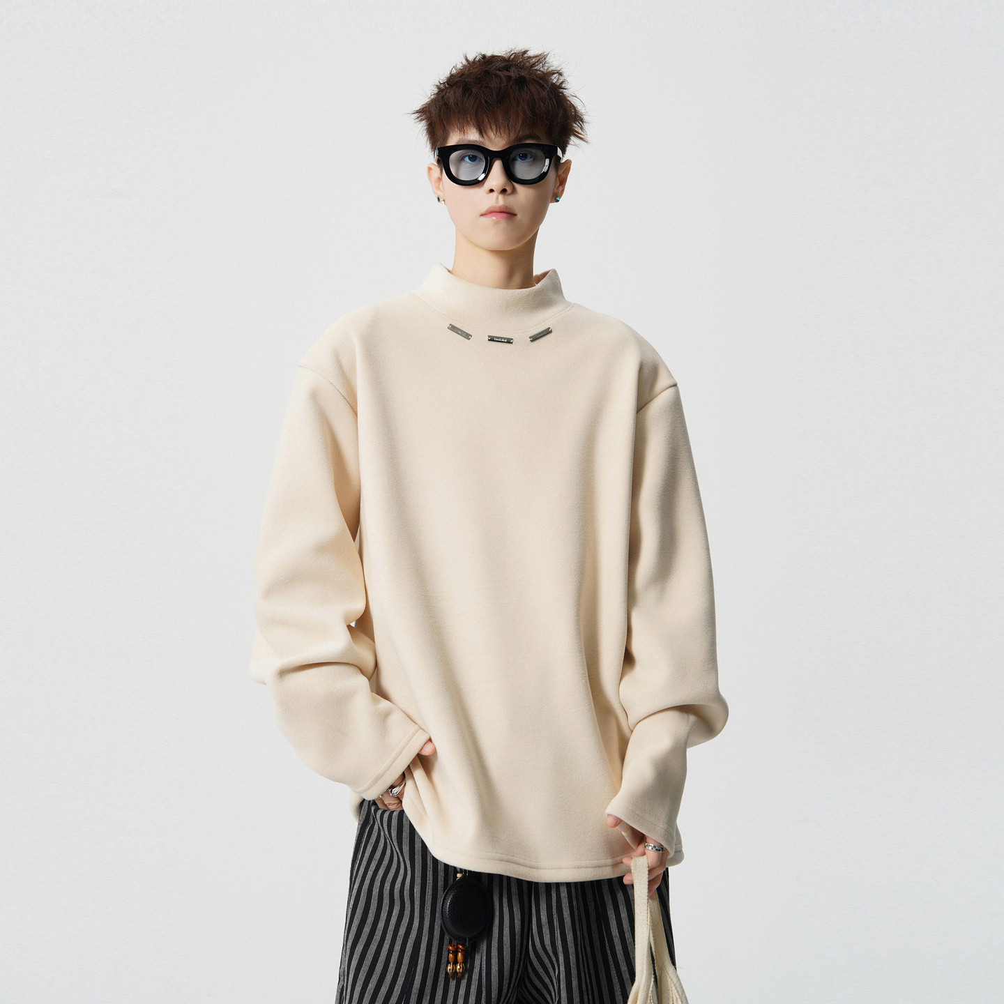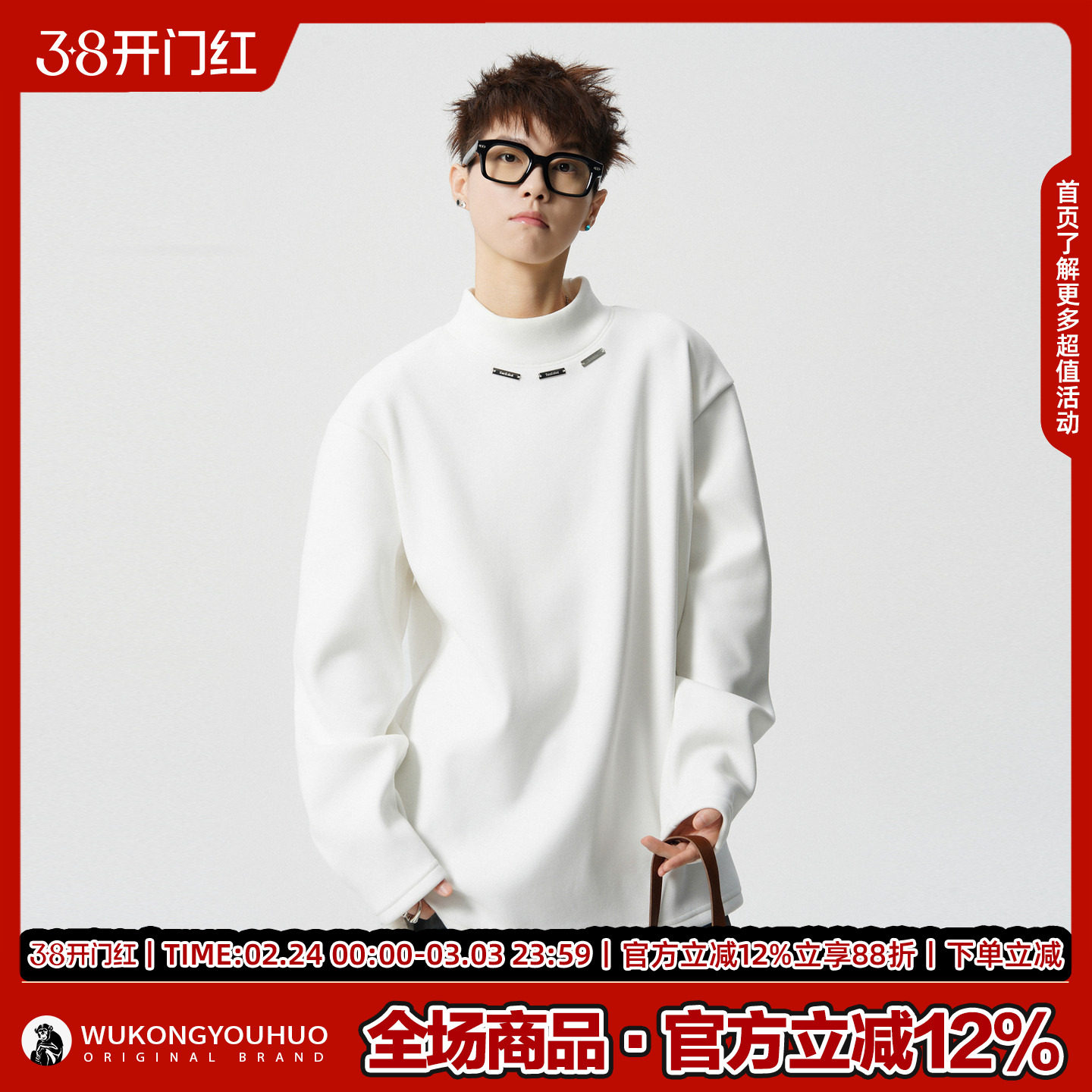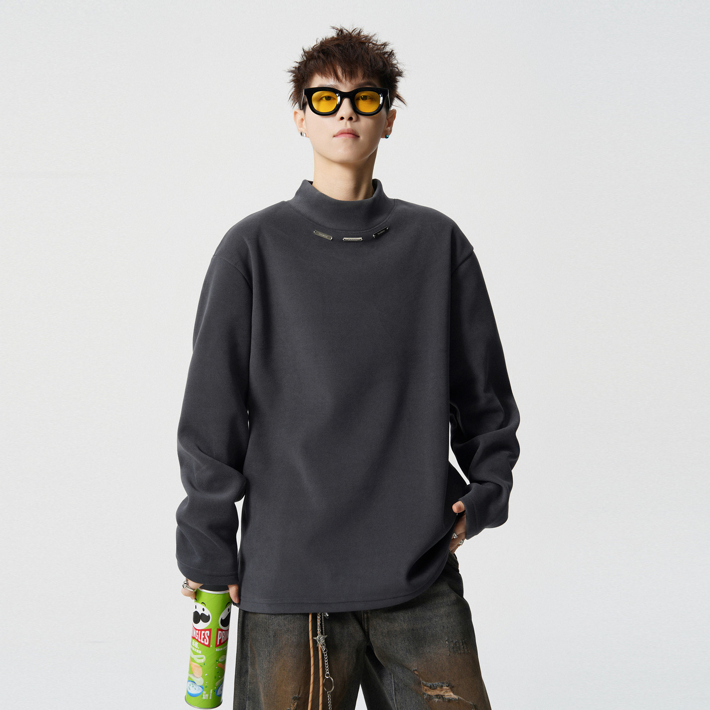 悟空有货街头金属标半高领德绒长袖T恤男潮牌宽松加绒加厚打底衫