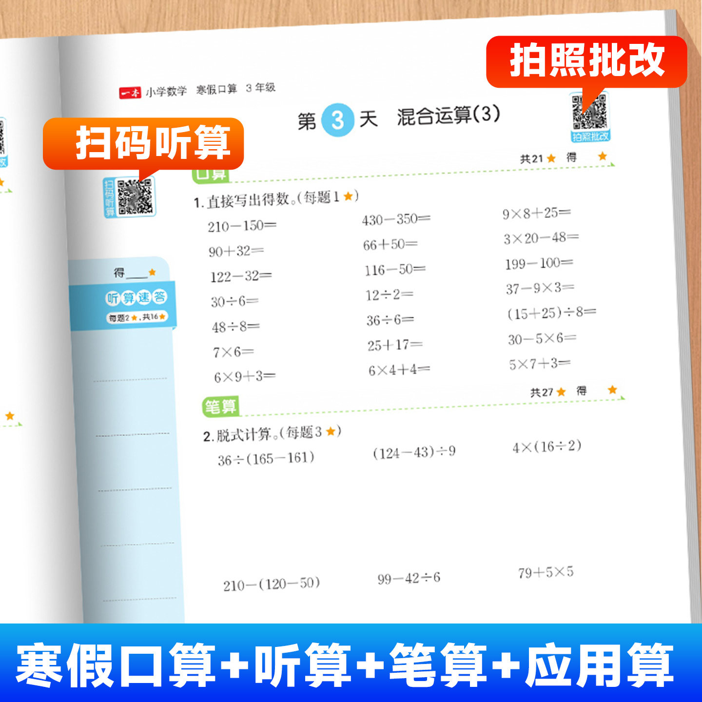 2026版一本寒假口算计算题应用题一二四五六三年级上下册数学人教版北师苏教版寒假衔接教材寒假作业预复习一本通计算能力专项训练