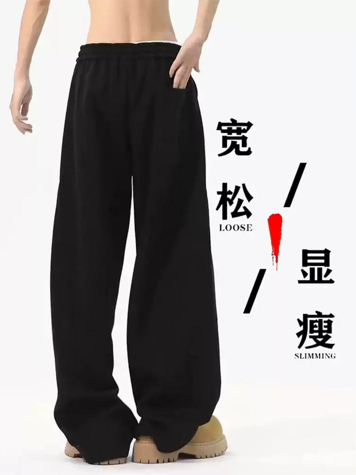 弯刀裤子男款冬季加绒加厚阔腿运动卫裤男士宽松直筒男生休闲长裤