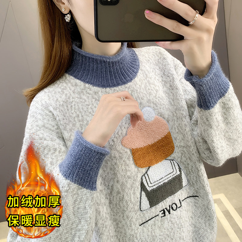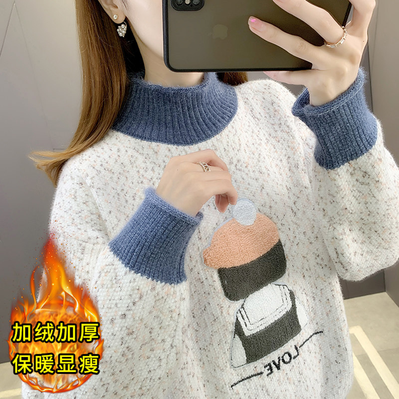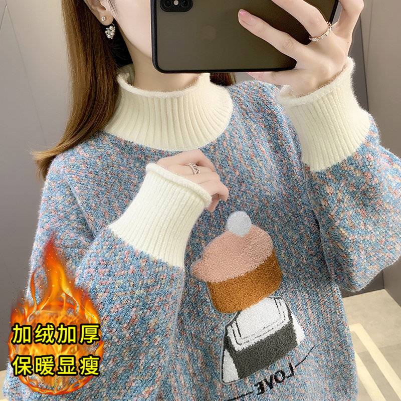 毛衣女款2025新款冬季加绒加厚保暖衣服内搭女秋冬半高领打底衫女