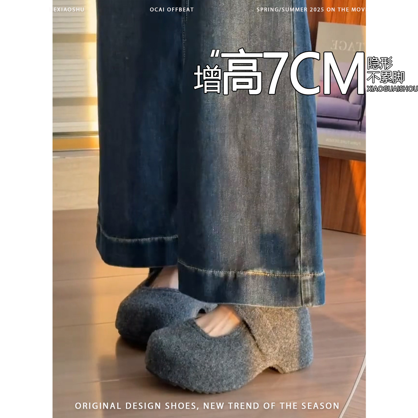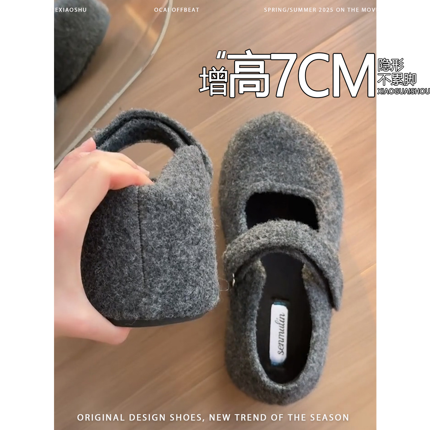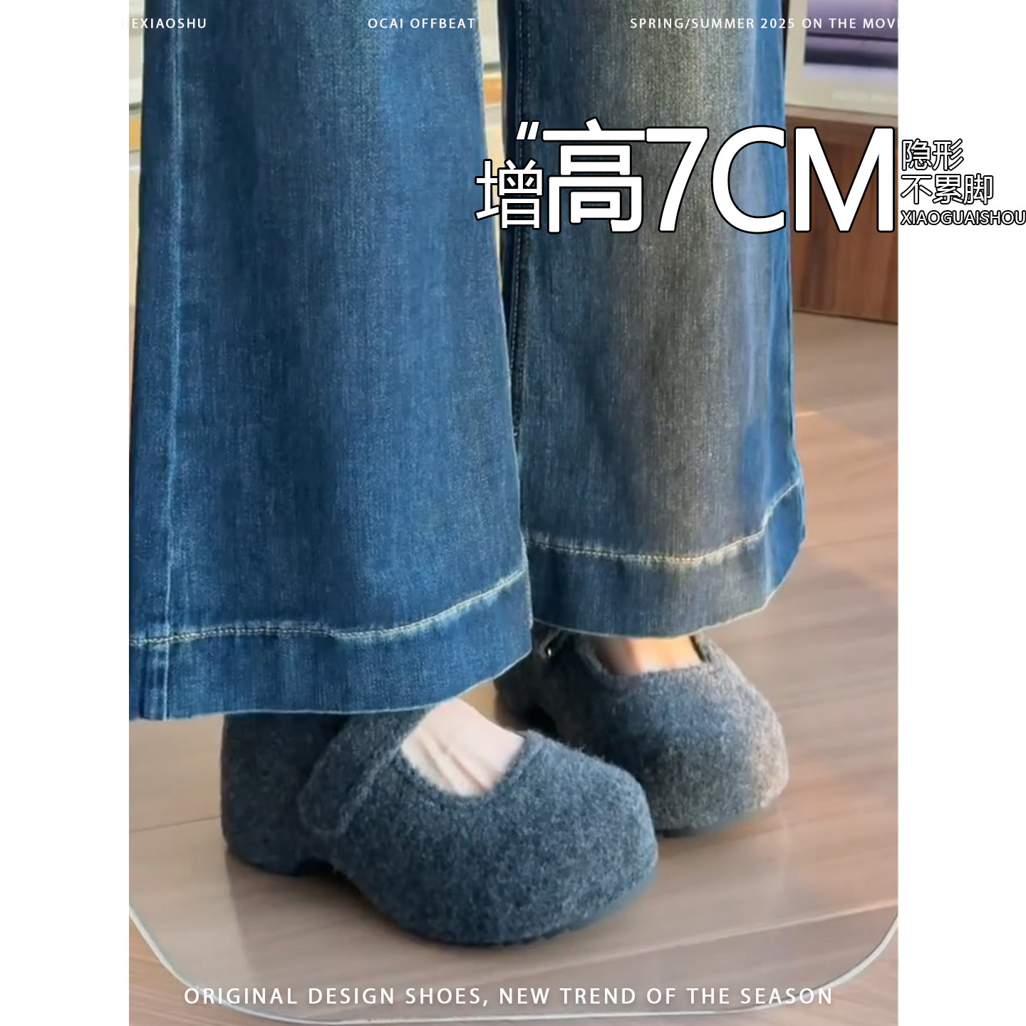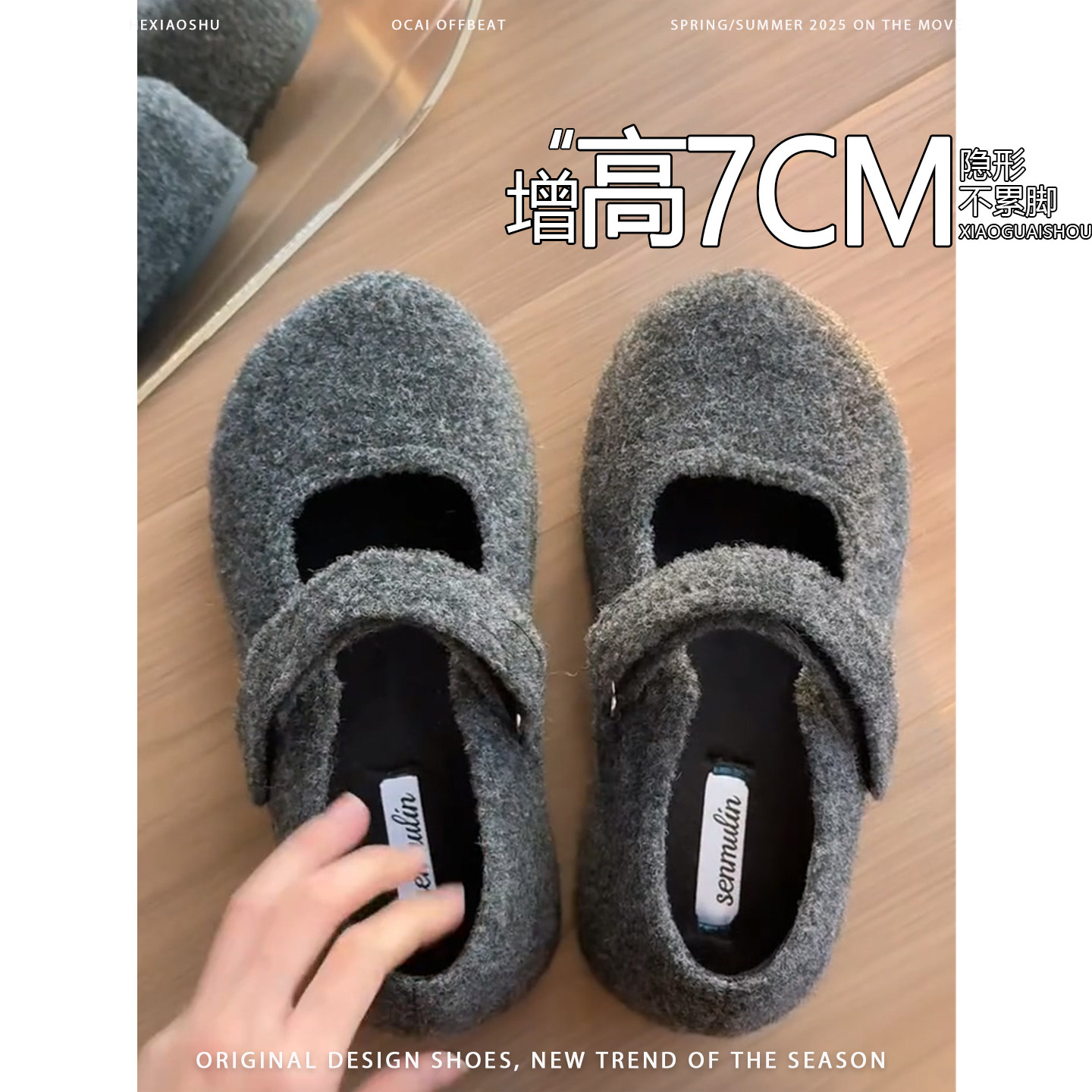 不累脚~内增高8CM毛呢加绒勃肯鞋女2025年新款保暖魔术贴厚底单鞋