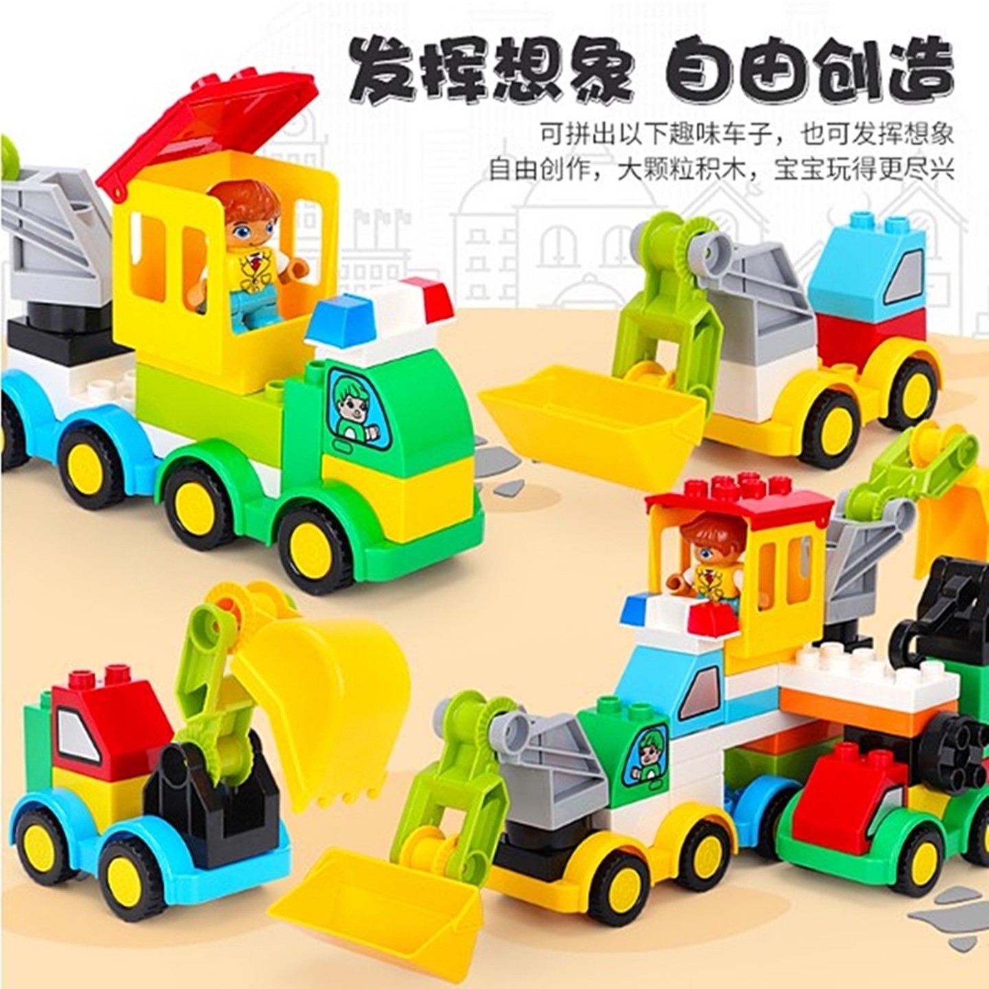 儿童积木大颗粒拼装玩具拼接百变汽车男女孩3宝宝动脑益智力礼物6