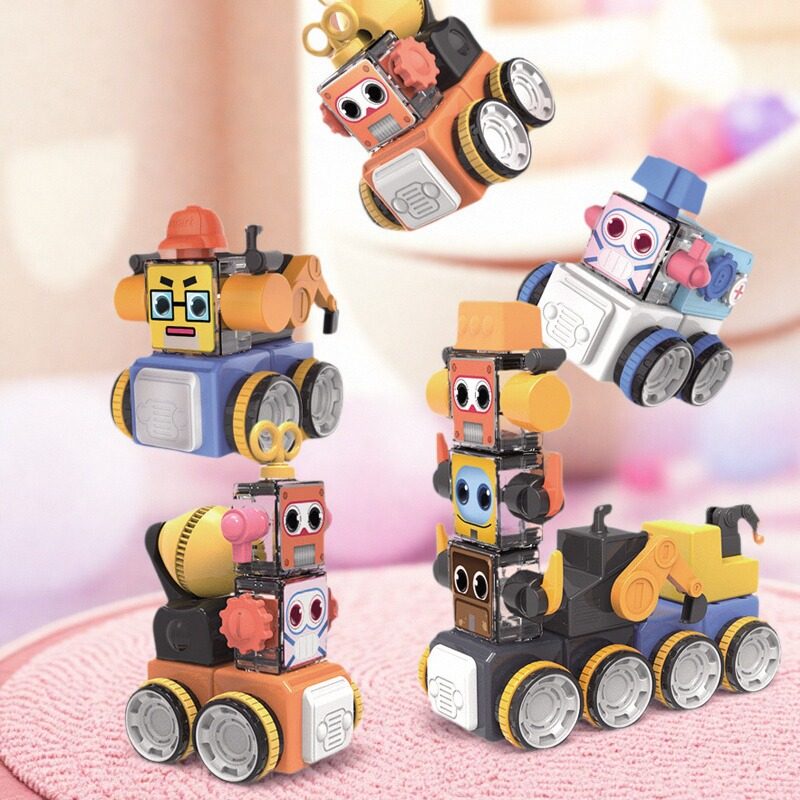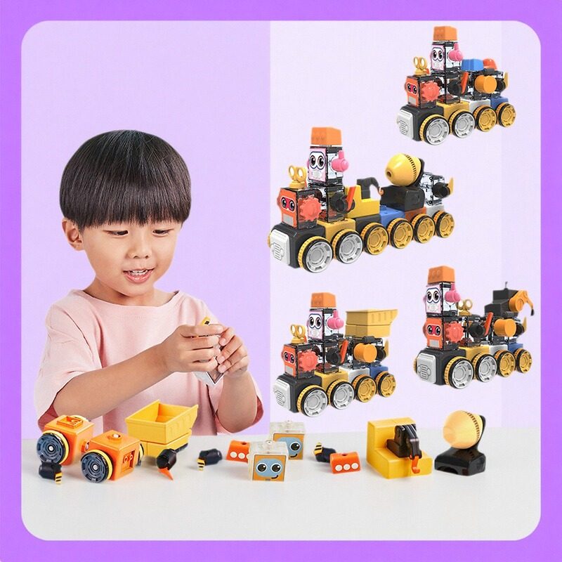 享鹿科技积木拼装车积木玩具车大颗粒防误吞手动拼插车益智力动脑