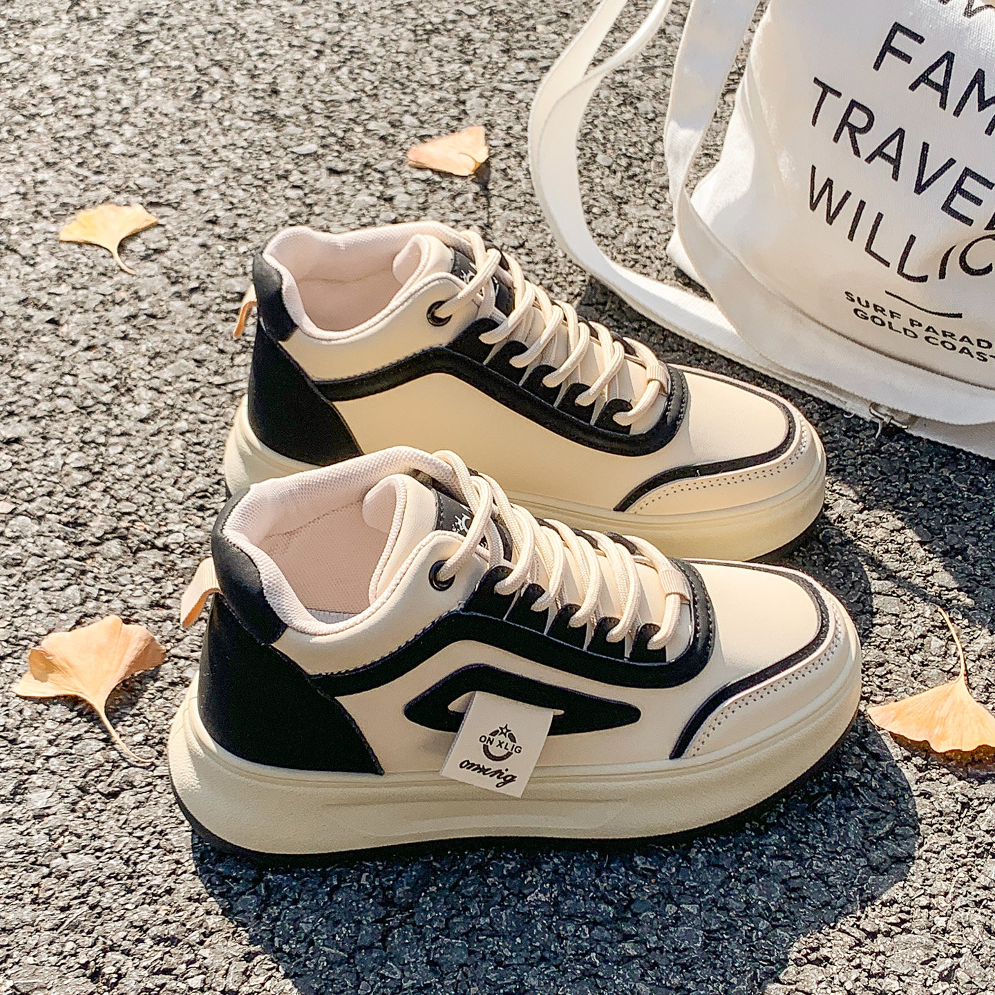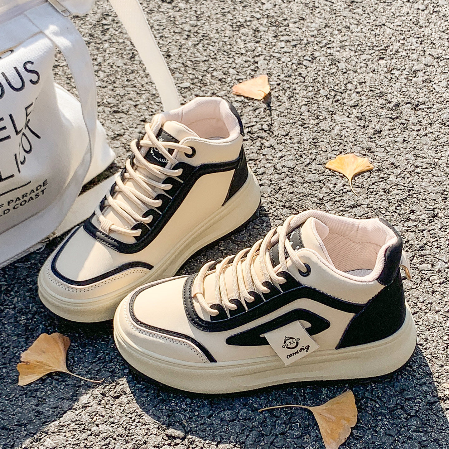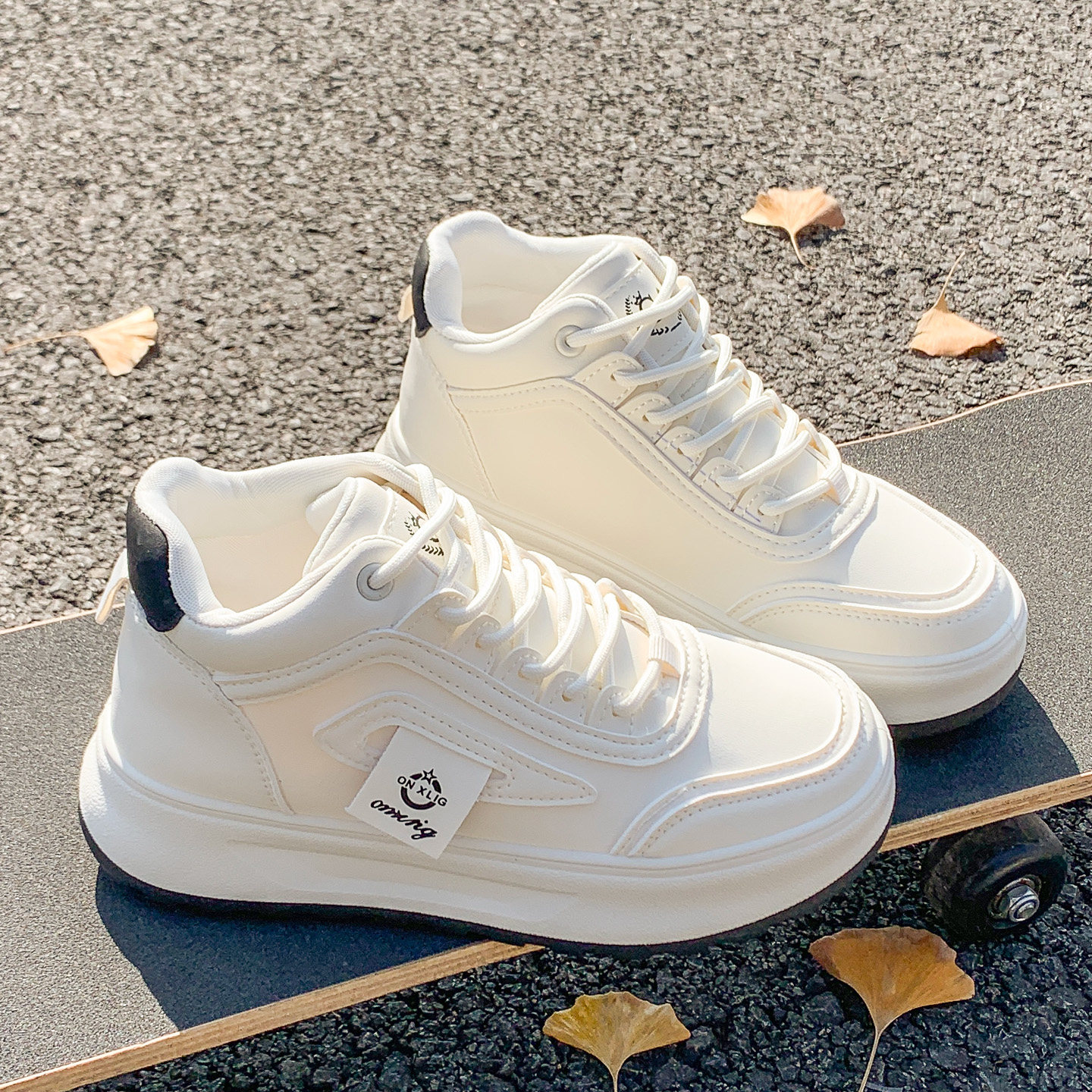 高帮厚底小白鞋女款2026新款春季学生防滑软底不累脚妈妈运动板鞋