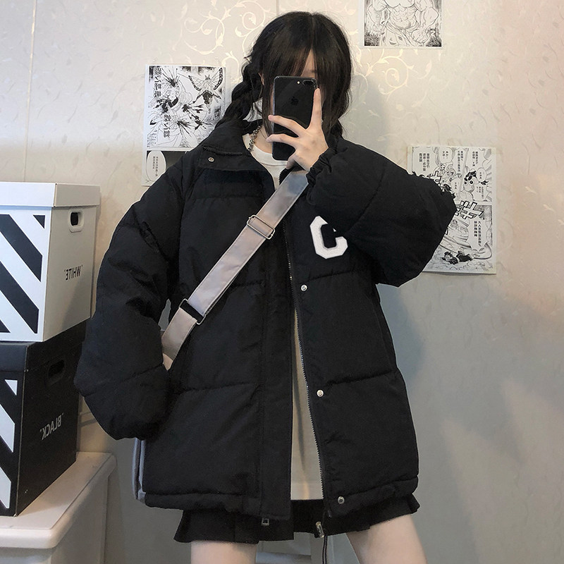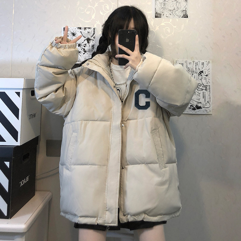 冬季宽松立领白鸭绒羽绒服少女2024新款初中学生ins潮面包服外套