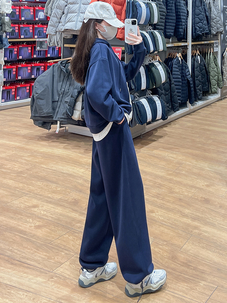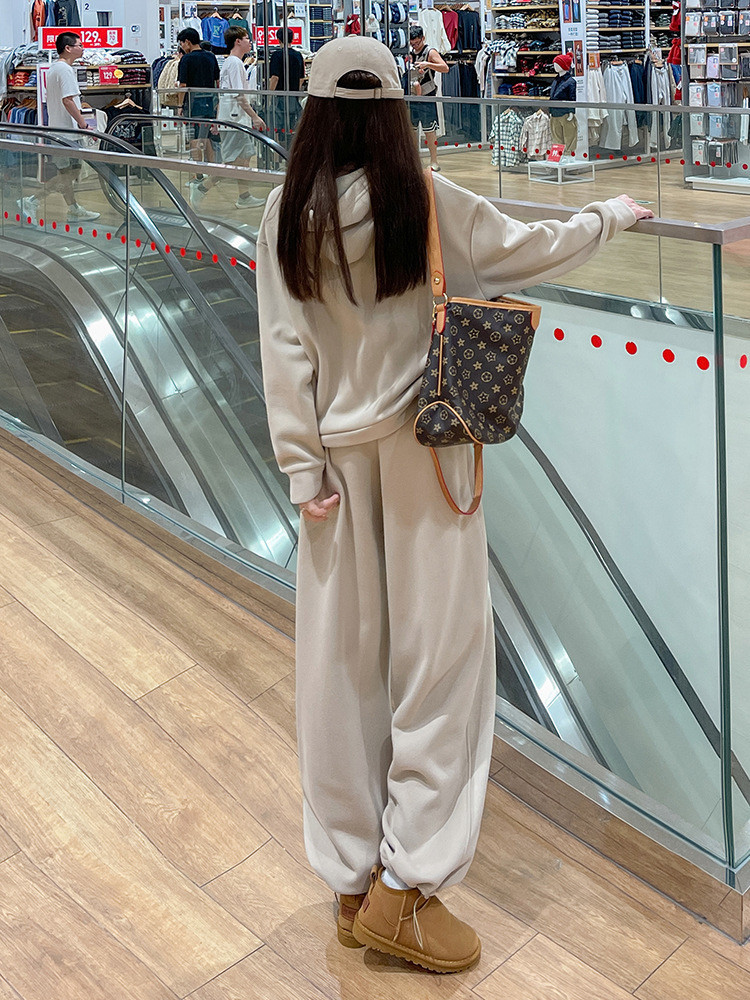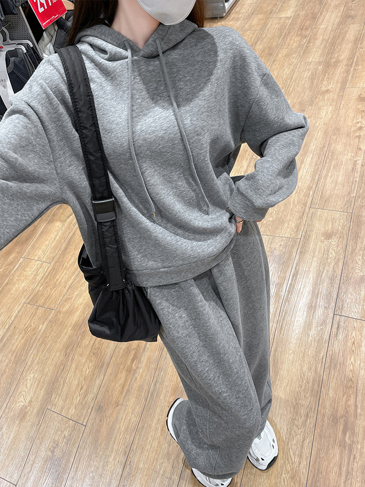 加绒加厚女款连帽长袖卫衣时尚套装女宽松阔腿休闲裤2026秋冬新款