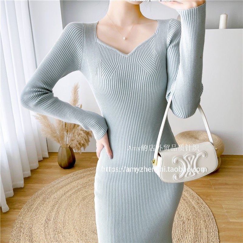 2025秋冬新款软糯修身显瘦包臀针织毛衣连衣裙女中长款针织鱼尾裙