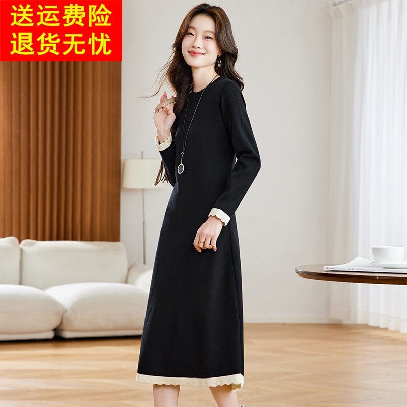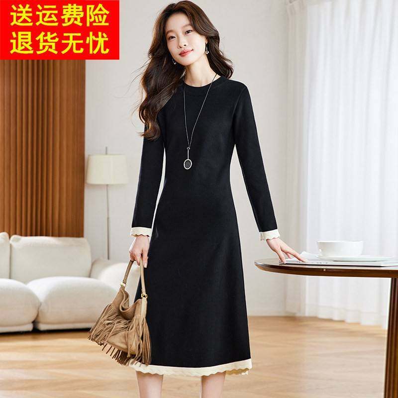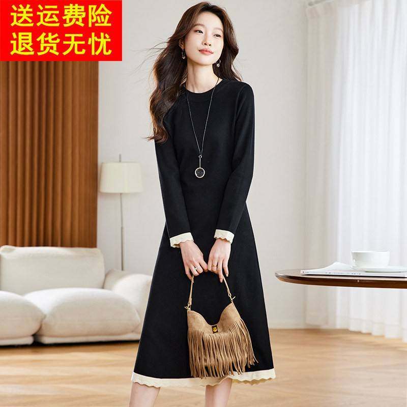 高级感黑色针织连衣裙女2025秋冬新款时尚设计感小众清冷ol风长裙