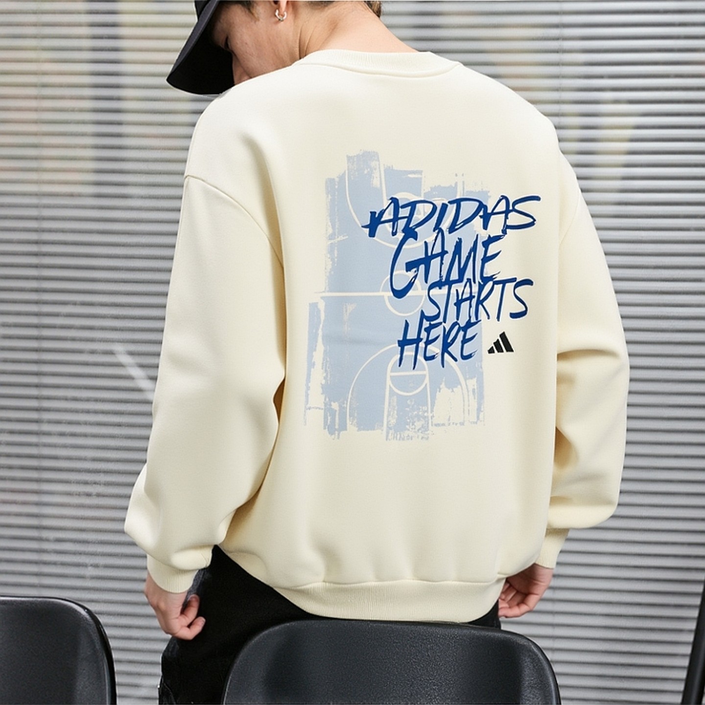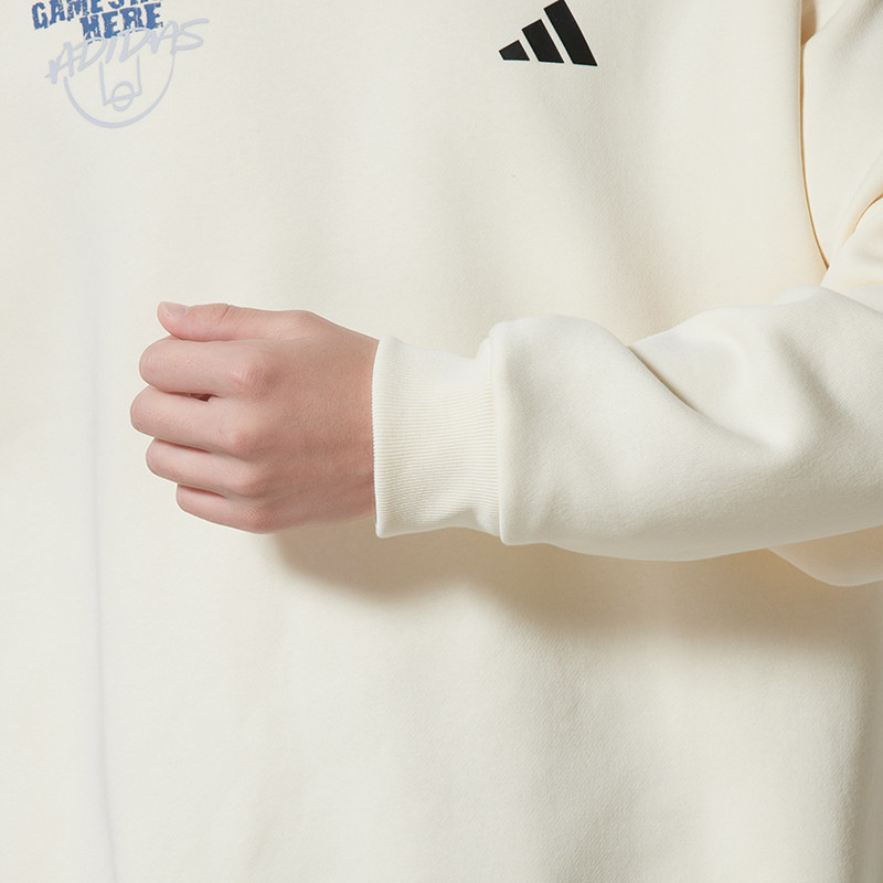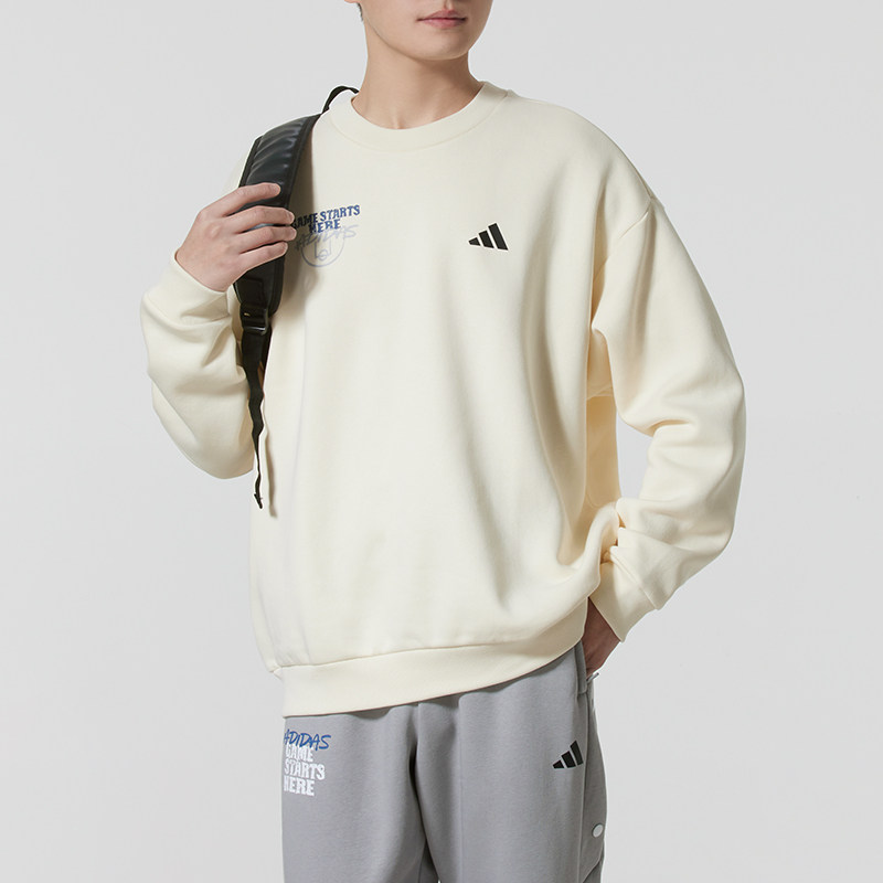 阿迪达斯篮球卫衣男子加绒加厚字母印花运动圆领卫衣休闲套头衫