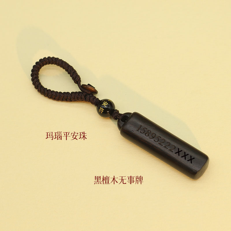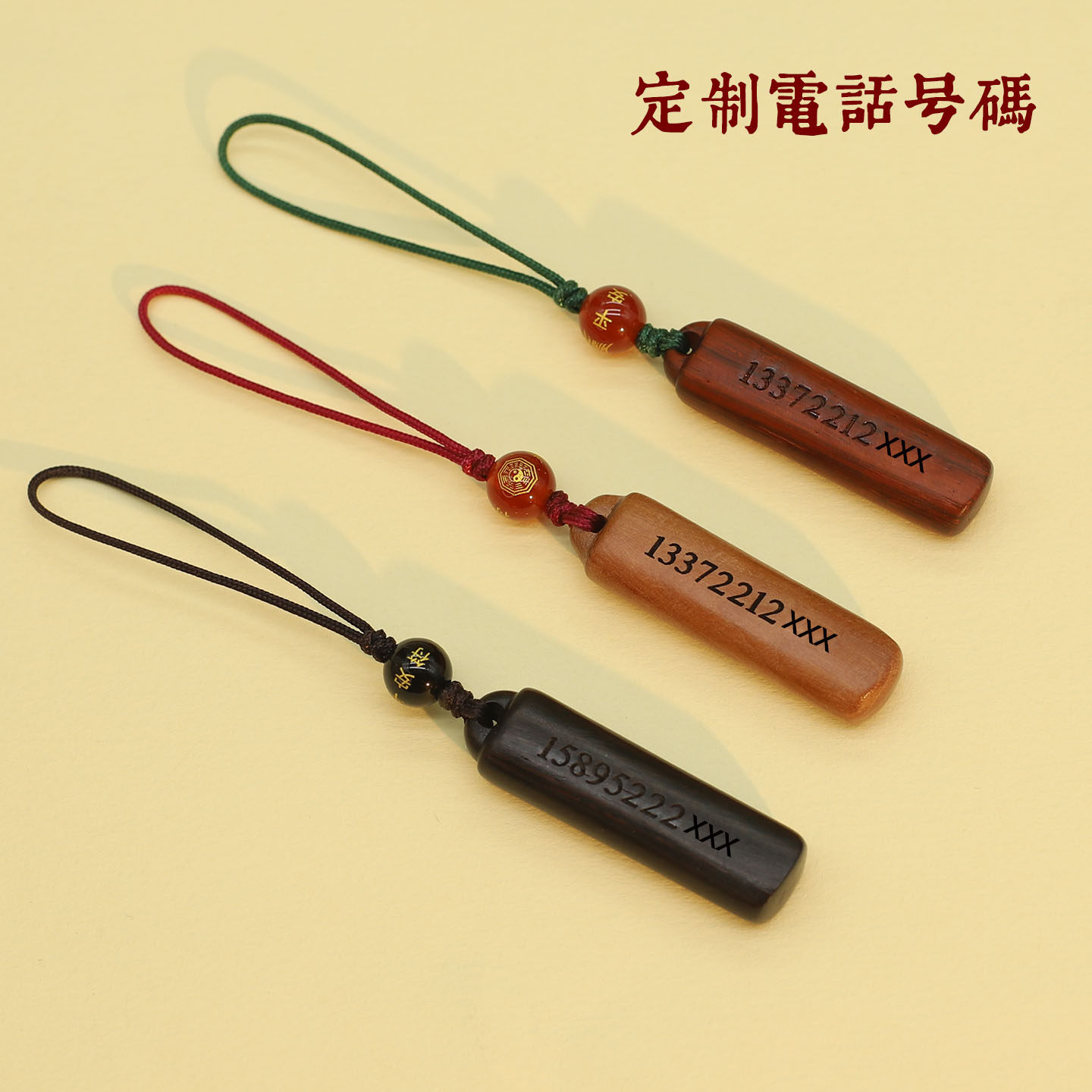桃木平安无事牌防丢挂件定制电话号码刻字汽车钥匙扣手机随身挂饰